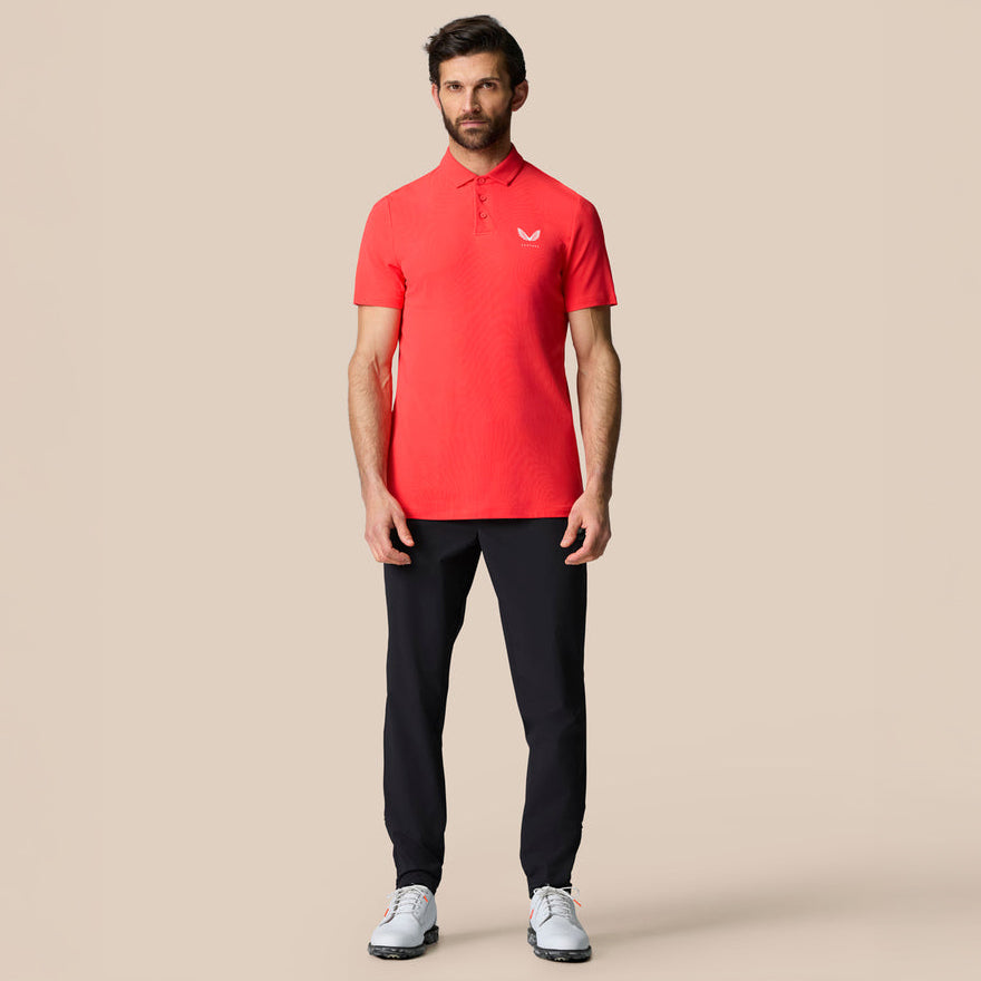 -High-kahabaan, magaan na tela: Nag-aalok ng maximum na kakayahang umangkop at paghinga, na nagpapahintulot sa hindi pinigilan na paggalaw sa bawat swing. -Aertek Technology: Pinahuhusay ang wicking ng pawis upang mapanatili kang tuyo at komportable, kahit na sa pinakamainit na araw. -Drop-back hem na may pagbubukas ng hem seam: nagbibigay ng karagdagang saklaw at tinitiyak na manatiling komportable ka sa panahon ng mga pabago-bagong paggalaw. -Self-Fabric na tinuro na kwelyo na may Stand: Isang Modern at naka-istilong disenyo na nagdaragdag ng isang malinis, matalim na hitsura sa iyong golf outfit. -Set-sa mga maikling manggas: Nag-aalok ng isang komportableng akma at isang naka-istilong tapusin, perpekto para sa mas mainit na panahon. -Side splits: Pagandahin ang hanay ng paggalaw, na nagpapahintulot para sa buong kakayahang umangkop sa panahon ng iyong swing. -Aertek tertiary branding sa ibabang kaliwang likod: banayad na pagba -brand na nagtatampok ng kalidad at pagganap ng tuktok. -Castore branding sa kaliwang dibdib at itaas na likod: premium branding na sumasalamin sa mataas na pagganap at naka-istilong disenyo ng tuktok.