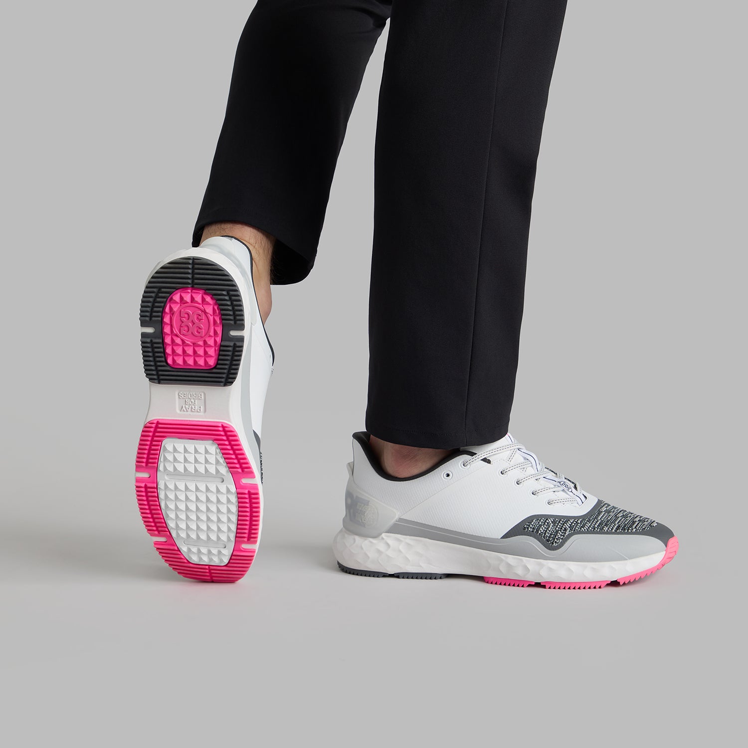 Ang sapatos na MG4+ Golf ay ang perpektong kumbinasyon ng magaan na kaginhawaan at pagganap ng teknikal. Ang pagtatayo sa mga pangangailangan ng isang klasikong sapatos ng golf, ang stippled style na ito ay nagdaragdag ng isang modernong pananaw. Ipinagmamalaki ang isang hugasan, triple density foam cushion footbed at auxetic lattice midsole, mayroon itong dalawang-piraso na goma outsole at 3D na hinubog ang panlabas na takong counter para sa akma, katatagan, at suporta.