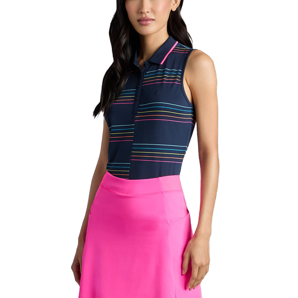 G/FORE Women's Split Stripe Tech Pique Sleeveless Golf Polo Shirt - Takip -silim