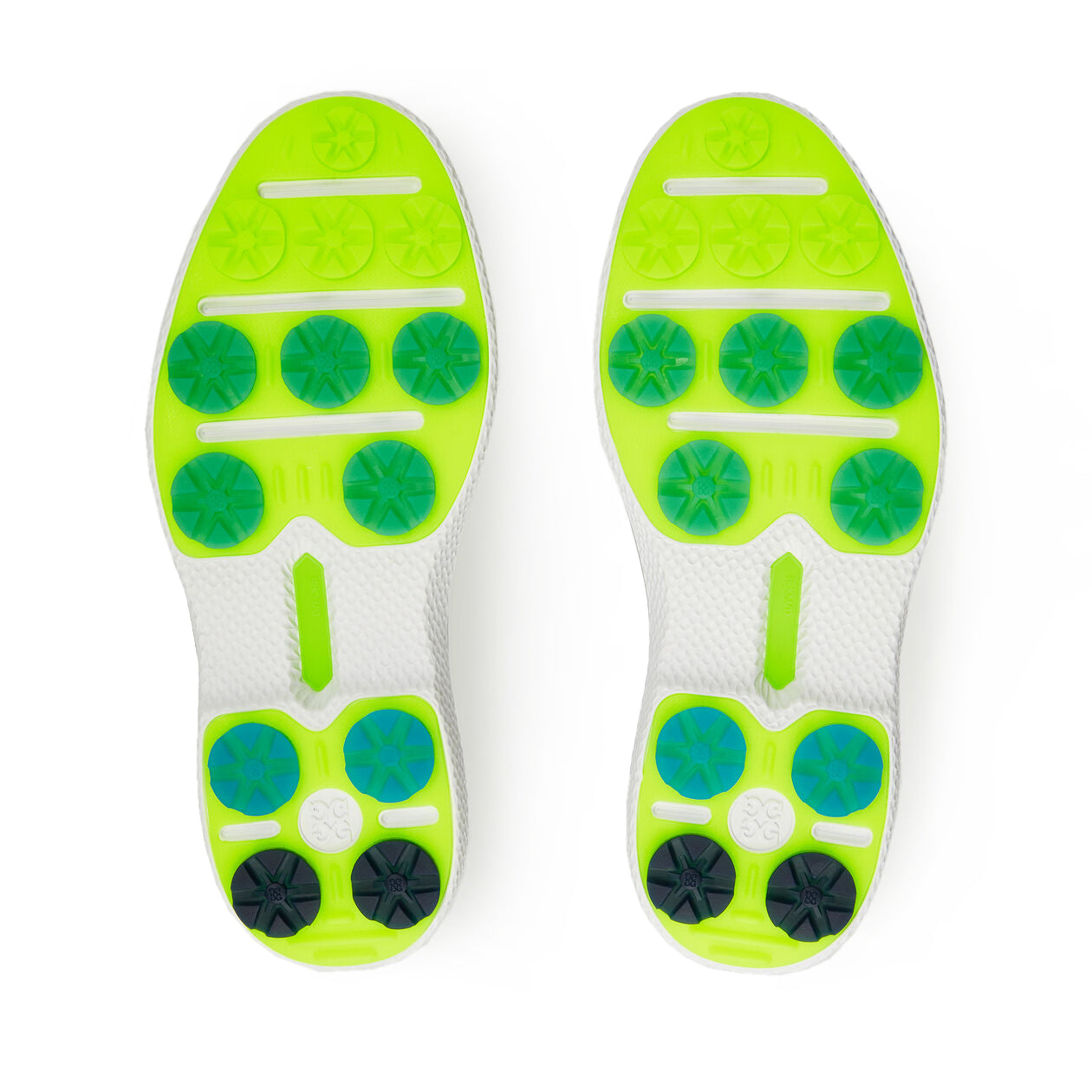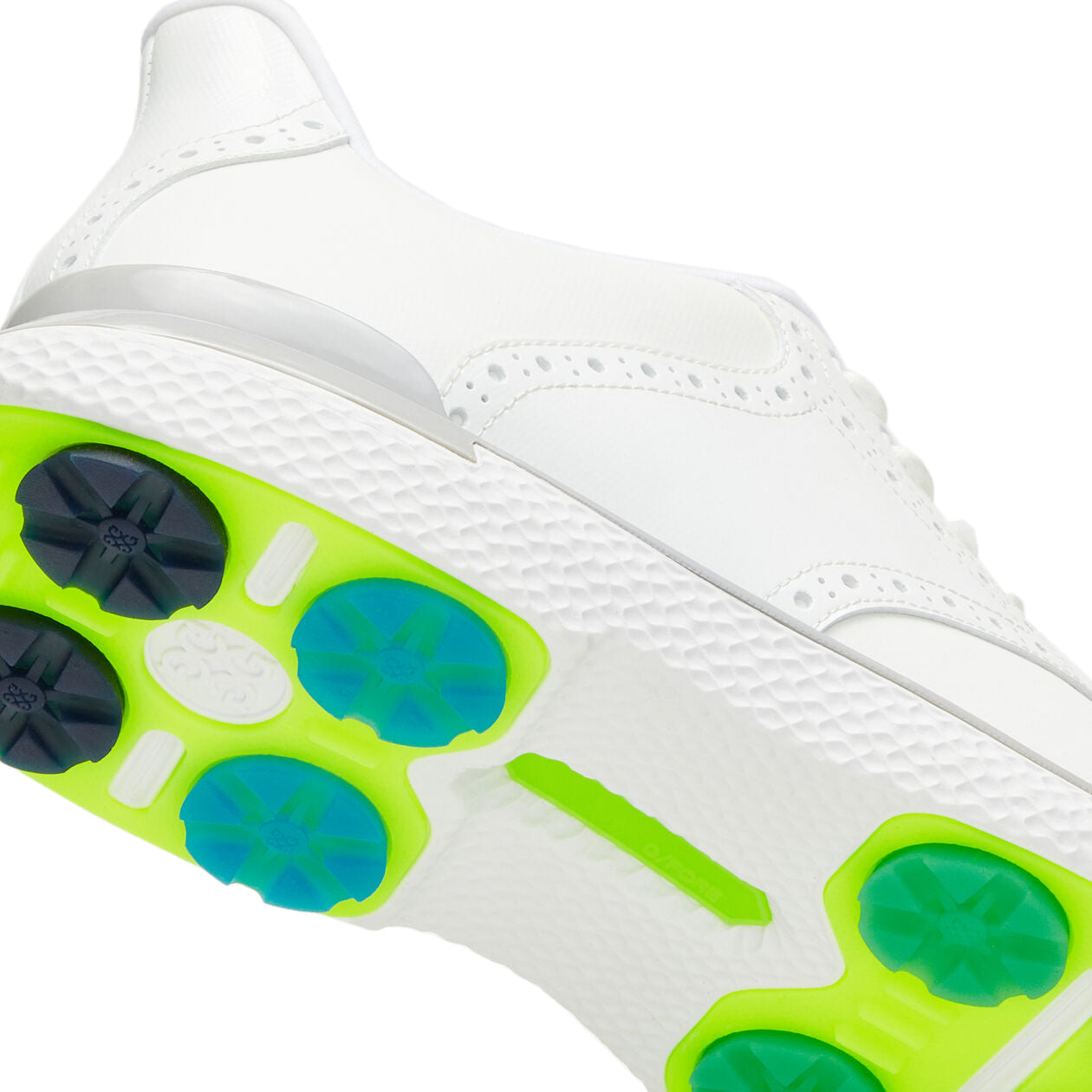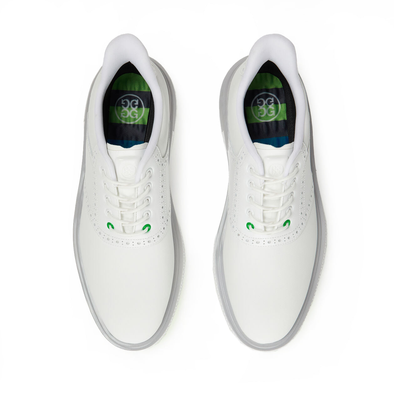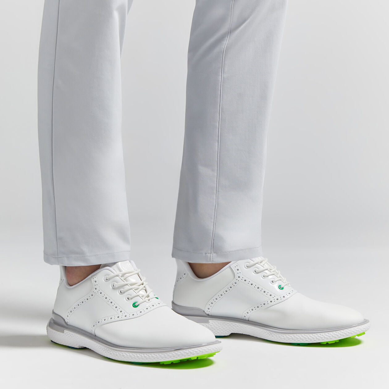 Ang isang kumbinasyon ng mga modernong detalye ng pagganap ng MG4+kasama ang klasikong silweta ng gallivanter. Nilagyan ng isang auxetic lattice midsole, integrated goma cleat system, takong cap, cushioned interior, at amoy na pumipigil sa mesh lining, ang ultra lightweight at komportableng disenyo ay may ganap na naka-lock na katatagan para sa bawat swing. Ang hindi tinatagusan ng tubig T.P.U. Hindi hahayaan ng itaas na pigilan ka ng panahon.