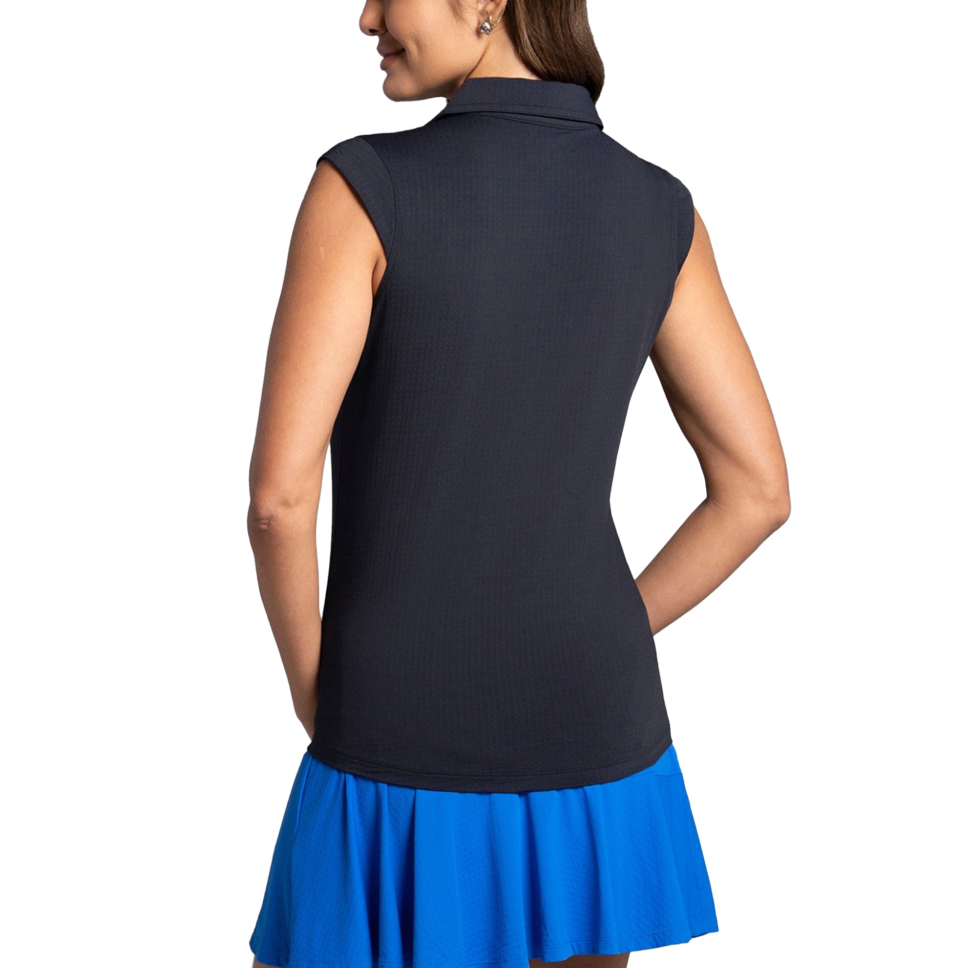 Ibkul Women Solid Sleeveless Zip Golf Polo Shirt - Itim