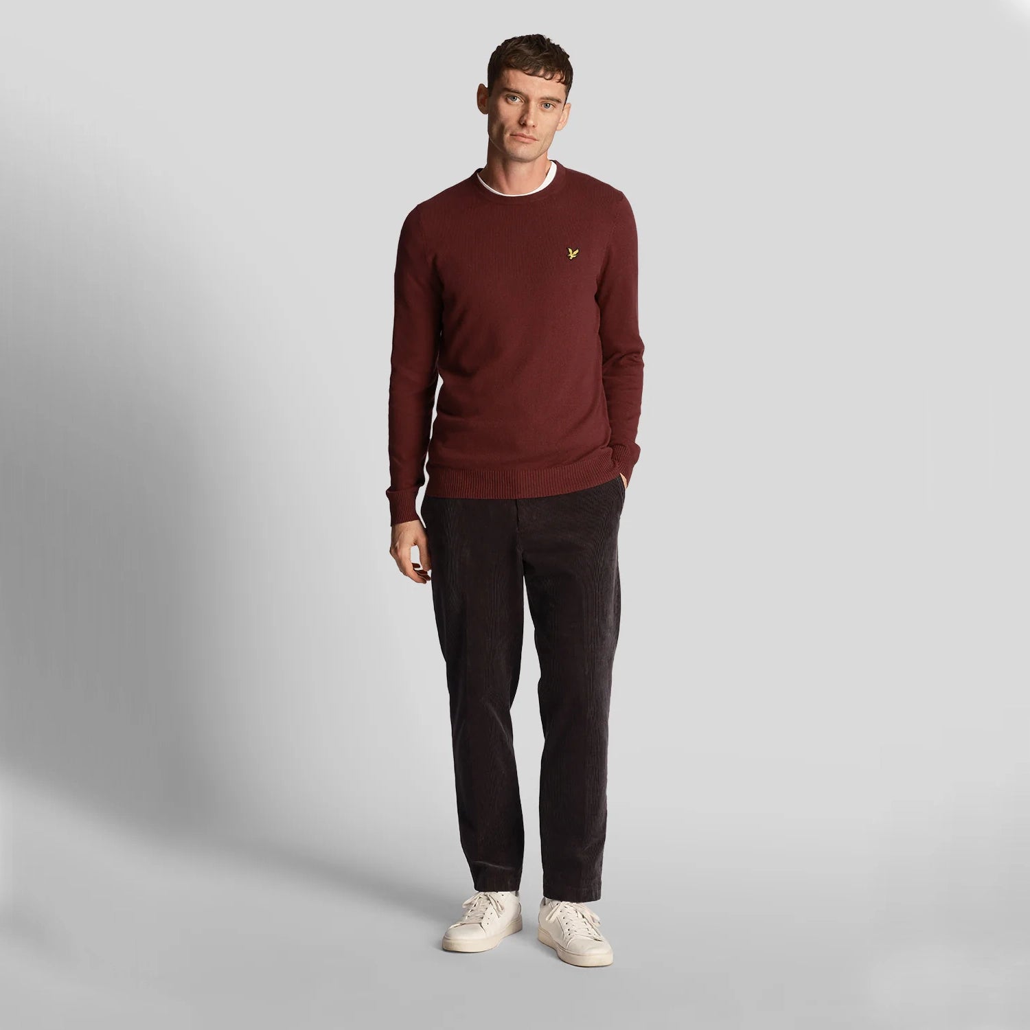 Lyle & Scott Cotton Merino Blend Crew Neck Pullover - Burgundy