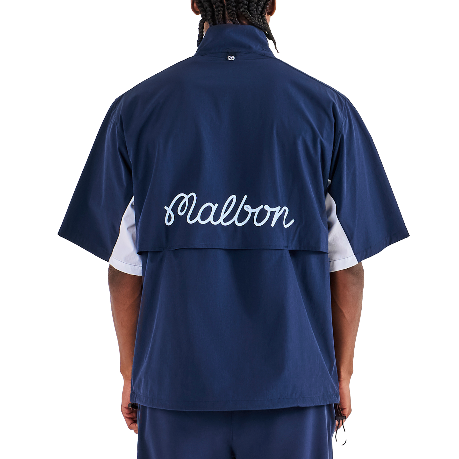 Fabrication: 88% nylon 12% spandex Harap na bulsa Buksan ang back vent Drawcord waistband na may lock stopper Ang logo ng mga buckets ng burda sa kaliwang dibdib Ang naka -print na logo ng script ng malbon sa likod