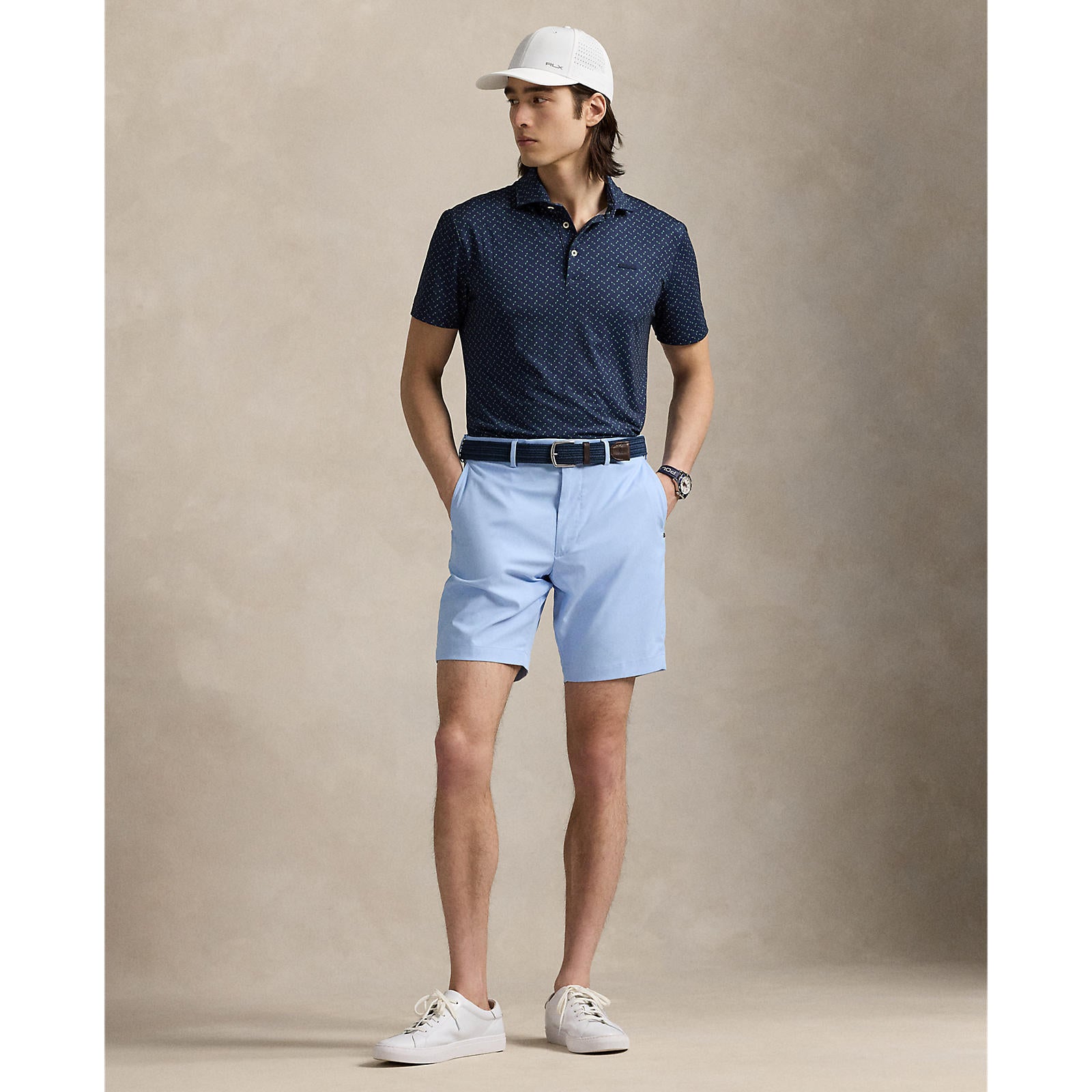 Rlx ralph lauren naka -print lightweight airflow golf polo shirt - multi deco toss pino navy