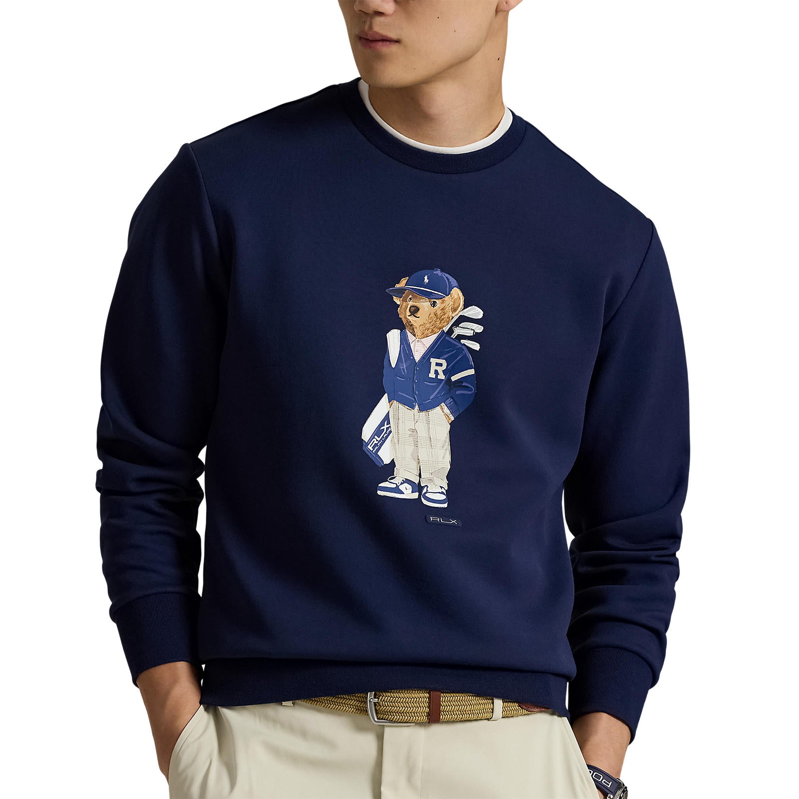Polo bear graphic Nagtatampok ng minamahal na polo bear print sa harap ng gitna, ipinares sa isang tab na "RLX" para sa istilo ng lagda.