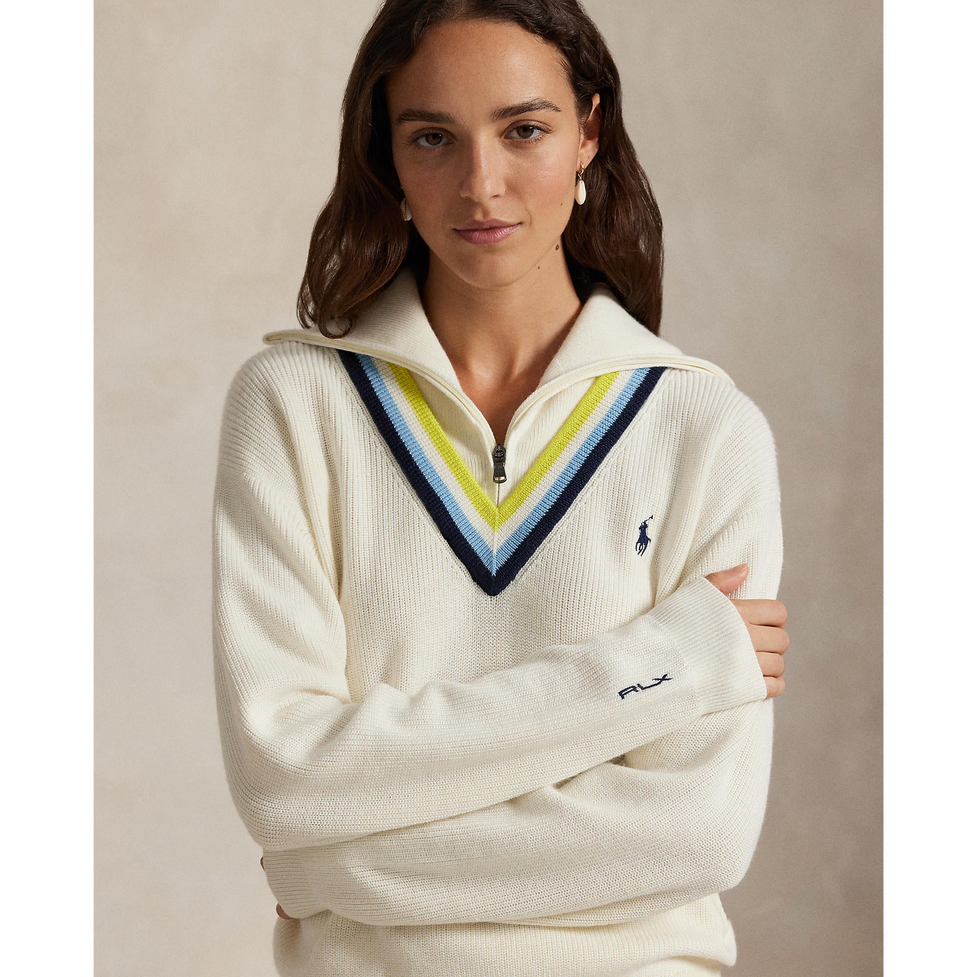 Classic, Cozy, and Effortlessly Athletic The RLX Ralph Lauren Women’s Cricket-Inspired Quarter-Zip Pullover blends the timeless appeal of a cricket jumper with the casual ease of a modern quarter-zip. Crafted from a soft wool-polyester blend, this versatile layer provides warmth, comfort, and classic athletic styling, elevated by signature RLX details.