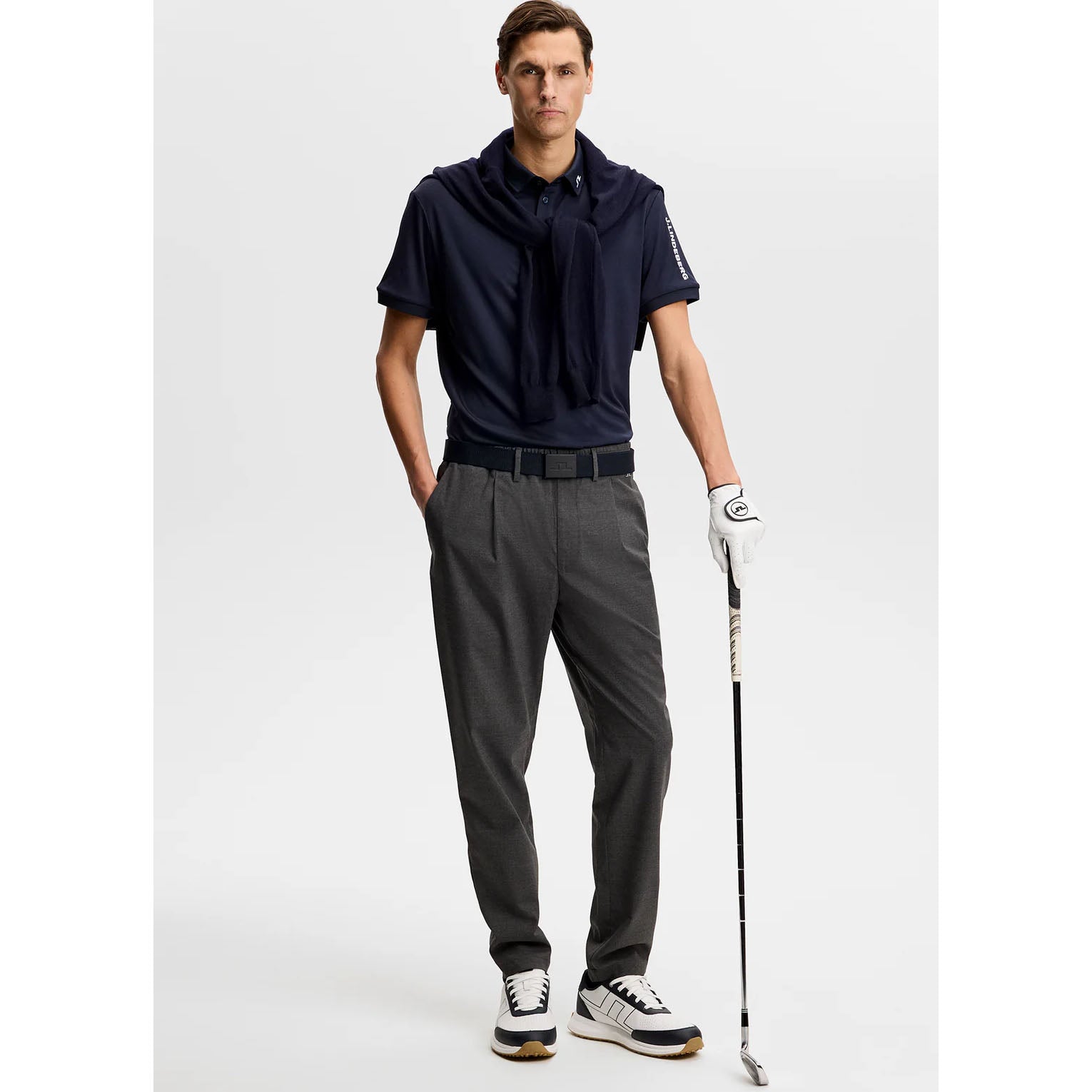 Penjenamaan Tandatangan: Mempunyai sulaman jambatan di kolar dan belakang, dengan logo J.Lindeberg di lengan untuk kemasan yang digilap.