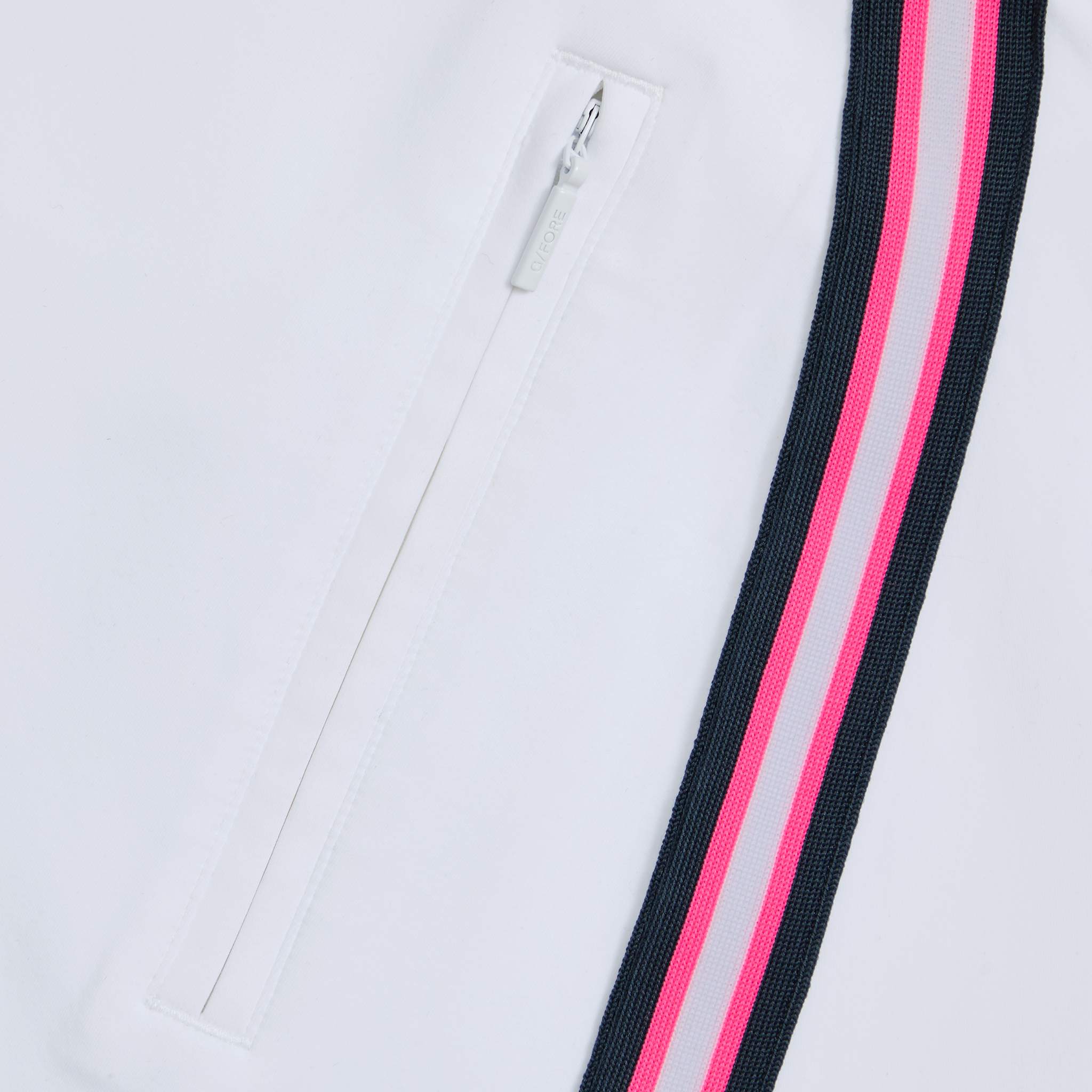 Dibuat dengan penyejukan, kain scuba regangan bernafas Jalur pinggang elastik untuk keselesaan & fleksibiliti tambahan Jalur kontras di sepanjang sisi Direka dengan peregangan 4-cara untuk mobiliti muktamad Kelembapan-wicking untuk membuat anda segar & kering Poket sampingan zipper untuk menyimpan bola golf dengan mudah & barang peribadi Seluar pendek terbina dalam dengan poket dalaman