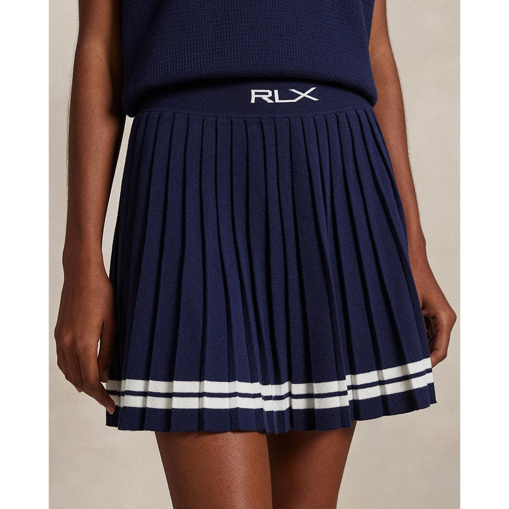 RLX Ralph Lauren Lauren Women's Knit Pleated Golf - Tentera Laut/Putih yang halus