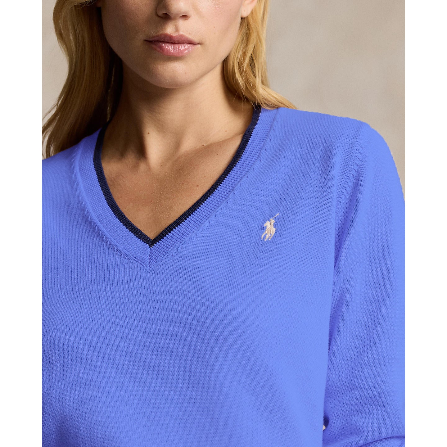 RLX Ralph Lauren Wanita Cotton Blend V -Neck Golf Jumper - Greenwich Blue