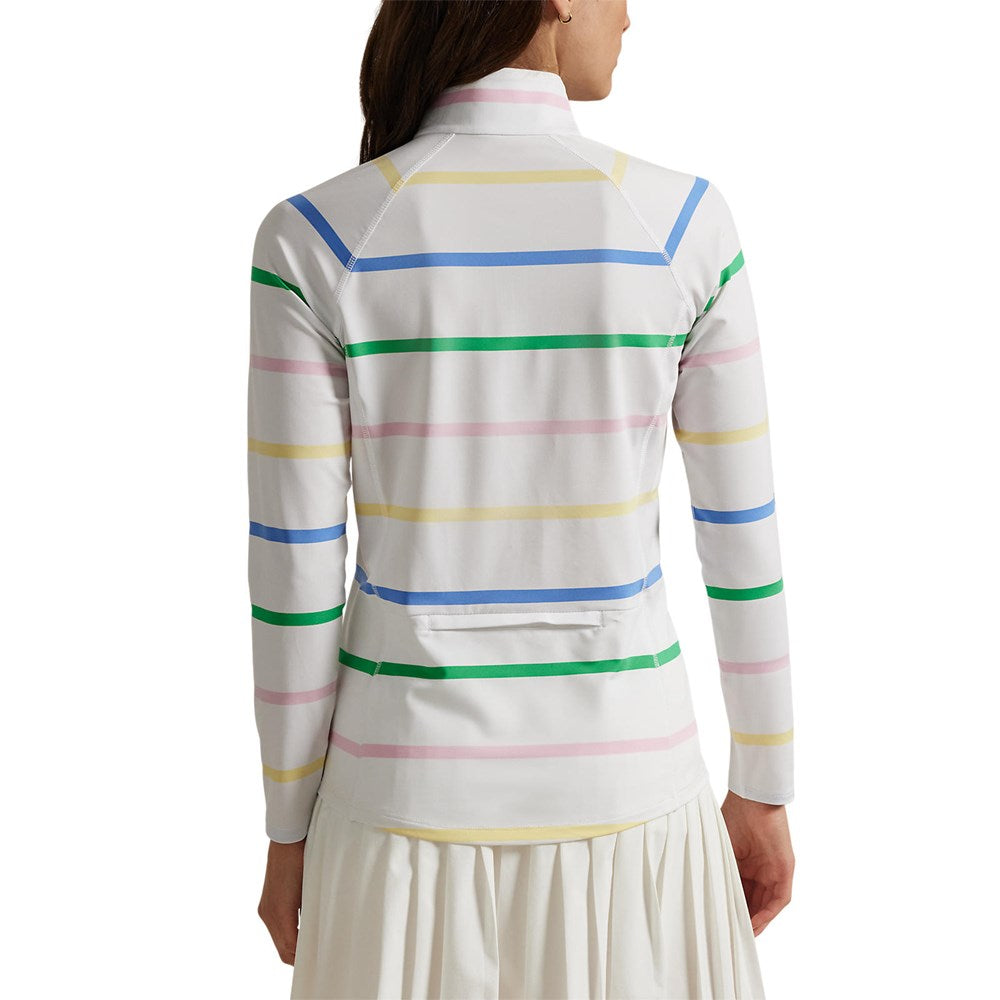 RLX Ralph Lauren Wanita Jersey UV Quarter Zip Golf Pullover - Seramik White Multi