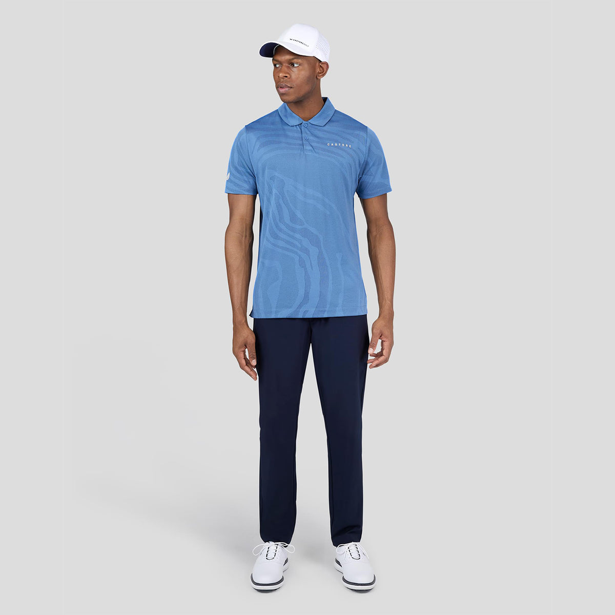 Castore's Engineered Knit Polo offers improved breathability thanks to its lightweight jacquard mesh fabric. Plus, the four-way stretch enables unrestricted movement as you play – it’s a perfect golfing classic.
