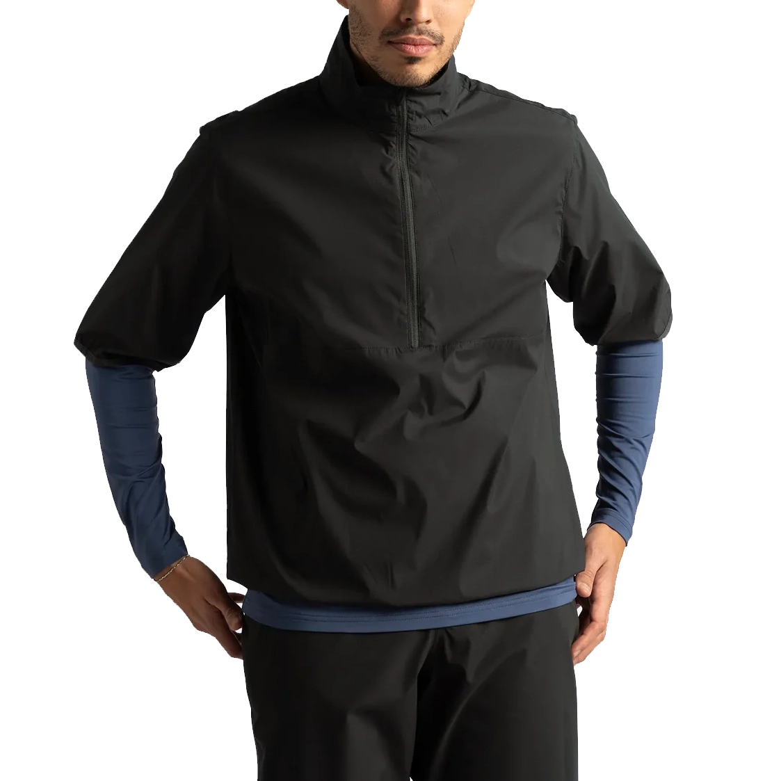 The Cross FTX Short-Sleeve Windbreaker delivers lightweight protection and modern style in a versatile, performance-driven design. Crafted from FTX 2-way stretch fabric with naturally textured yarns, it offers a soft hand feel, wind resistance, and unrestricted movement. Ergonomic cut-lines, a half-zip with reversed coil zipper, and a brushed poly-tricot lined high collar combine for comfort and functionality, making it a perfect layer for breezy days on or off the course.