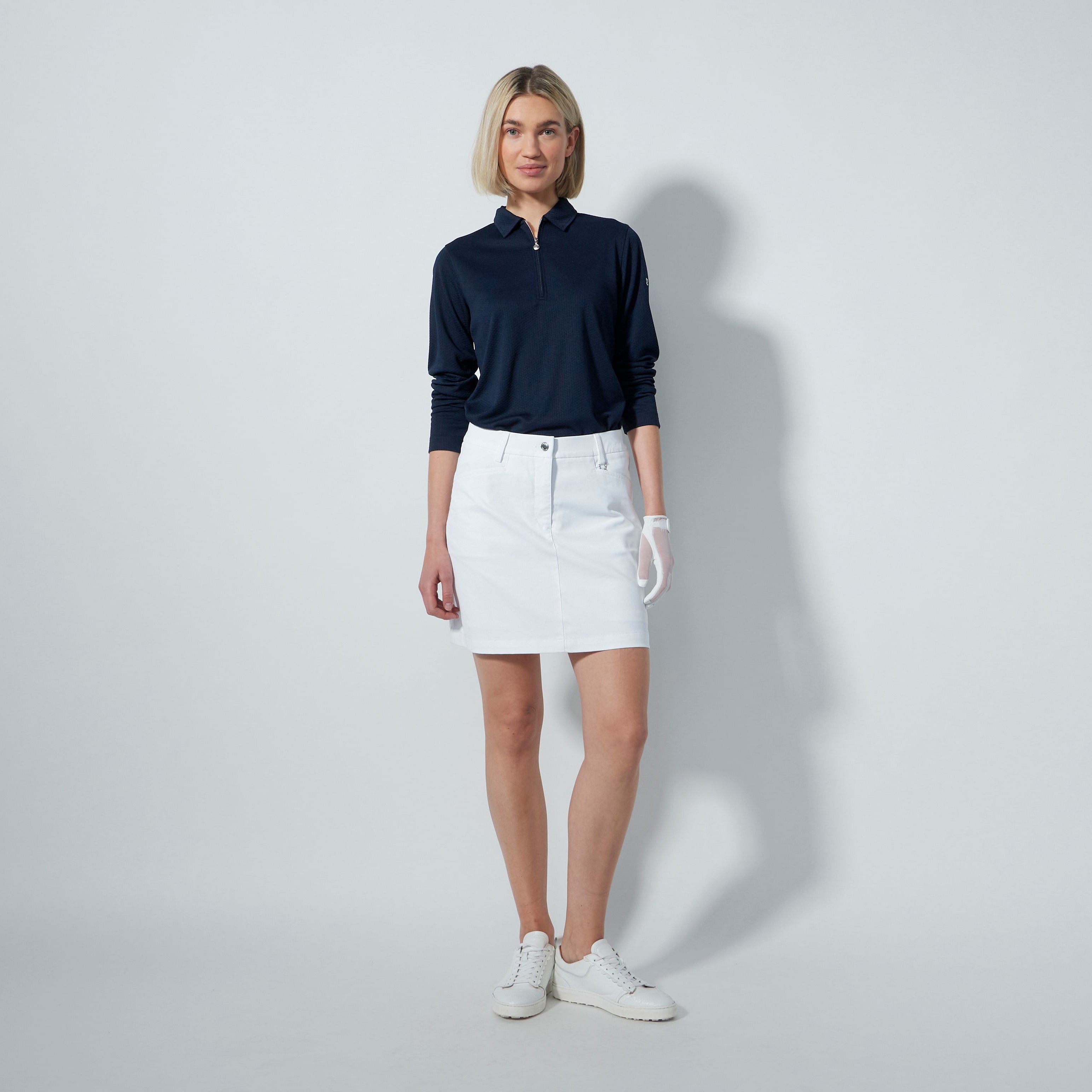 The Lyric V2 Skort is built for comfort and performance with a regular fit, elastic waistband, and inner jersey shorts for unrestricted movement. Made from quick-drying, stretch fabric, it is wrinkle-resistant, wind- and water-repellent, making it a reliable choice for any round.