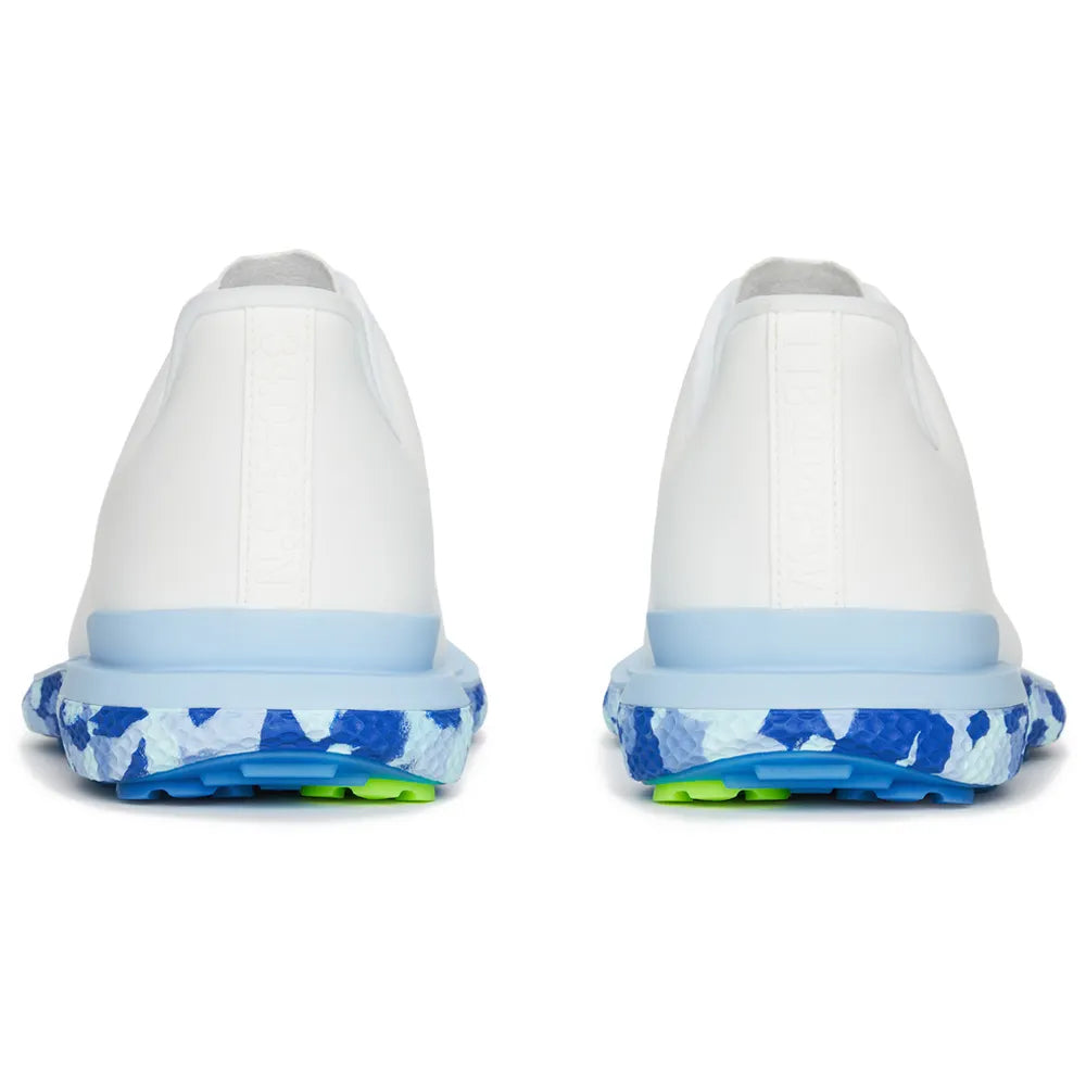 A COMBINATION OF THE MG4+'S MODERN PERFORMANCE DETAILS WITH THE GALLIVANTER'S CLASSIC SILHOUETTE, THE NEW GALLIVAN2R IS A FRESH ADDITION TO OUR WIDE SELECTION OF POPULAR GOLF SHOES. EQUIPPED WITH AN AUXETIC LATTICE MIDSOLE, INTEGRATED RUBBER CLEAT SYSTEM, HEEL CAP, CUSHIONED INTERIOR, AND ANTIMICROBIAL MESH LINING, ITS ULTRA LIGHTWEIGHT AND COMFORTABLE DESIGN COMES WITH FULLY LOCKED-IN STABILITY FOR EVERY SWING. THE WATERPROOF T.P.U. UPPER WON'T LET THE WEATHER STOP YOU EITHER. FEATURES THIS ITEM IS EXCLUSIVE TO G/FORE MADE OF WATERPROOF T.P.U. FOR EXTRA PROTECTION REMOVABLE & WASHABLE INSOLES FEATURING A ONE PIECE DUAL DENSITY 3D MOULDED HEEL CUP ATHLETIC ANTIMICROBIAL MESH LINING ENHANCING BREATHABILITY & PREVENTING ODOUR LIGHTWEIGHT DESIGN & CUSHIONED INTERIOR FOR OUT-OF-THE-BOX COMFORT AMPLIFIED SOLE WITH INTEGRATED G/POD CLEAT SYSTEM & SECONDARY TRACTION POINTS FOR UNPARALLELED STABILITY MULTIPLE SIZED FLEX POINTS STRATEGICALLY PLACED THROUGHOUT SOLE FOR FULL RANGE OF MOTION FIT TRUE TO SIZE MATERIALS UPPER: 97% T.P.U. / 3% SILICONE LINING: 85% NYLON / 15% SPANDEX BOTTOM: 75% RUBBER / 20% EVA / 5% T.P.U.