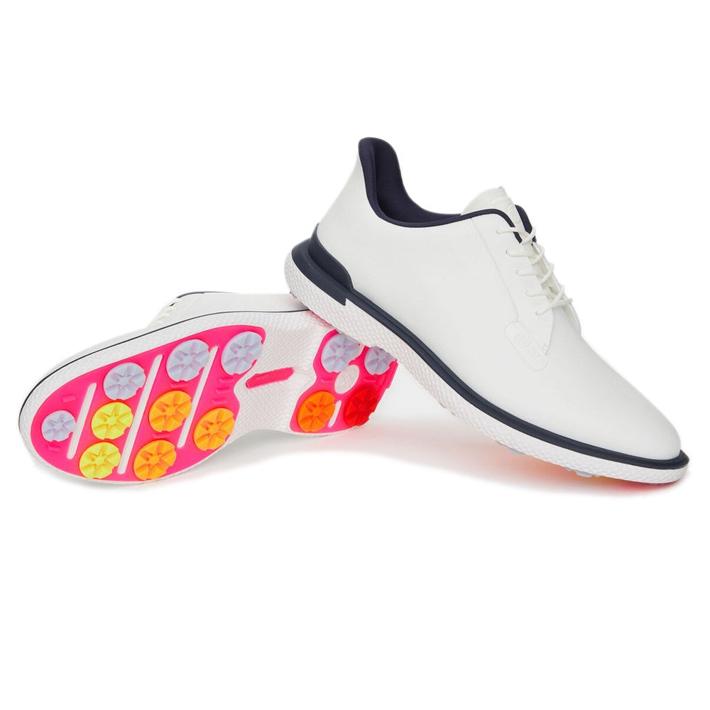 A COMBINATION OF THE MG4+'S MODERN PERFORMANCE DETAILS WITH THE GALLIVANTER'S CLASSIC SILHOUETT. EQUIPPED WITH AN AUXETIC LATTICE MIDSOLE, INTEGRATED RUBBER CLEAT SYSTEM, HEEL CAP, CUSHIONED INTERIOR, AND ANTIMICROBIAL MESH LINING, ITS ULTRA LIGHTWEIGHT AND COMFORTABLE DESIGN COMES WITH FULLY LOCKED-IN STABILITY FOR EVERY SWING. THE WATERPROOF T.P.U. UPPER WON'T LET THE WEATHER STOP YOU EITHER. FEATURES MADE OF WATERPROOF T.P.U. FOR EXTRA PROTECTION REMOVABLE & WASHABLE INSOLES FEATURING A ONE PIECE DUAL DENSITY 3D MOULDED HEEL CUP ATHLETIC ANTIMICROBIAL MESH LINING ENHANCING BREATHABILITY & PREVENTING ODOUR LIGHTWEIGHT DESIGN & CUSHIONED INTERIOR FOR OUT-OF-THE-BOX COMFORT AMPLIFIED SOLE WITH INTEGRATED RUBBER CLEAT SYSTEM & SECONDARY TRACTION POINTS FOR UNPARALLELED STABILITY MULTIPLE SIZED FLEX POINTS STRATEGICALLY PLACED THROUGHOUT SOLE FOR FULL RANGE OF MOTION FIT IF YOU ARE BETWEEN SIZES, WE RECOMMEND SIZING UP. MATERIALS UPPER: 97% T.P.U. / 3% SILICONE LINING: 85% NYLON / 15% SPANDEX BOTTOM: 75% RUBBER / 20% EVA / 5% T.P.U.