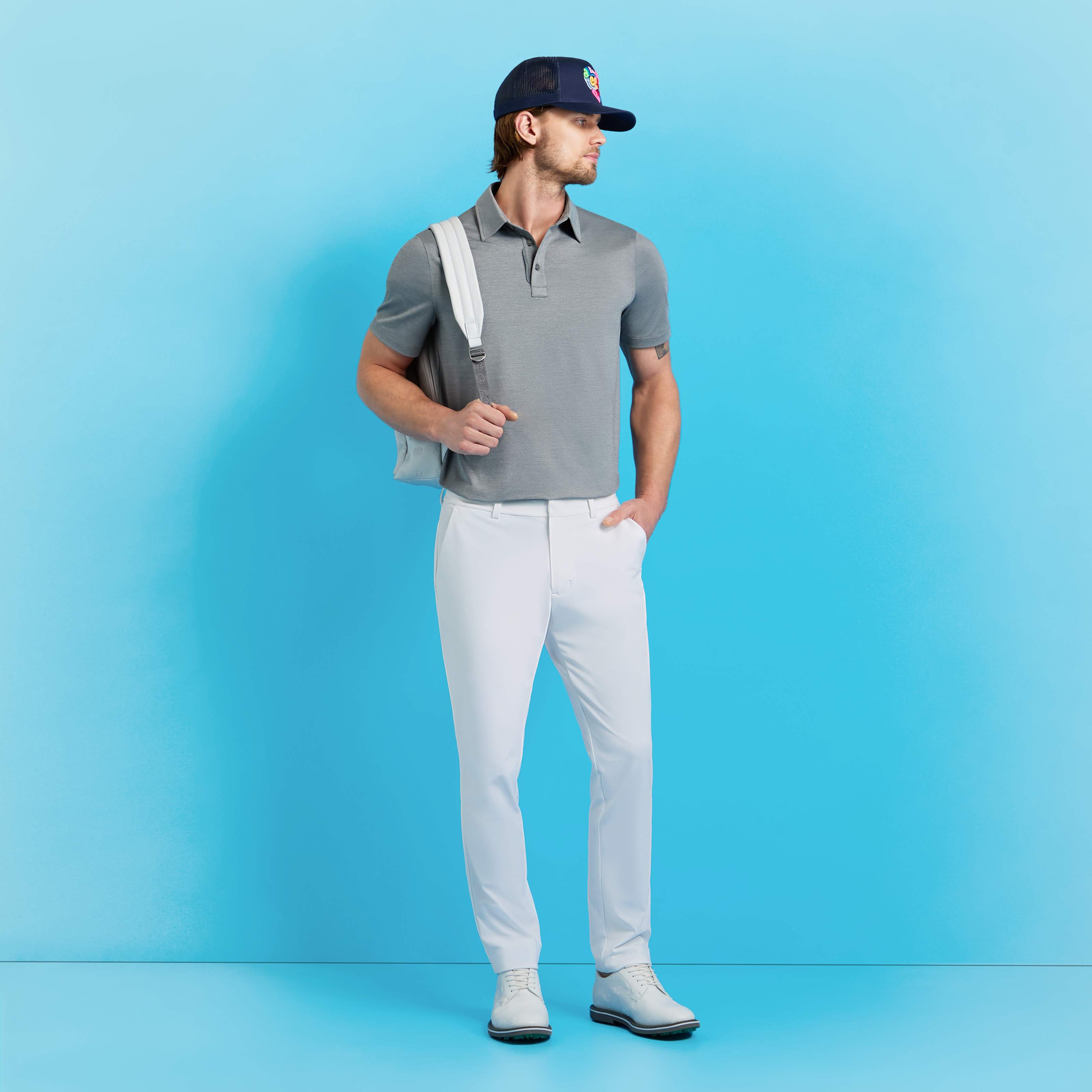 THIS CLASSIC POLO IS THE ULTIMATE EVERYDAY ESSENTIAL FOR DAYS AT THE CLUBHOUSE, THE COURSE, AND IN BETWEEN. MADE OF EXTRA BREATHABLE AND WICKING MÉLANGE ICE NYLON WITH ODOR INHIBITING AND COOLING PROPERTIES, PLUS 4-WAY STRETCH, IT'S A MUST-HAVE FOR ANY GOLFER'S CLOSET. PAIR THIS EVERYDAY STYLE WITH ONE OF OUR STRAIGHT LEG PANTS FOR ALL DAY PLAY.