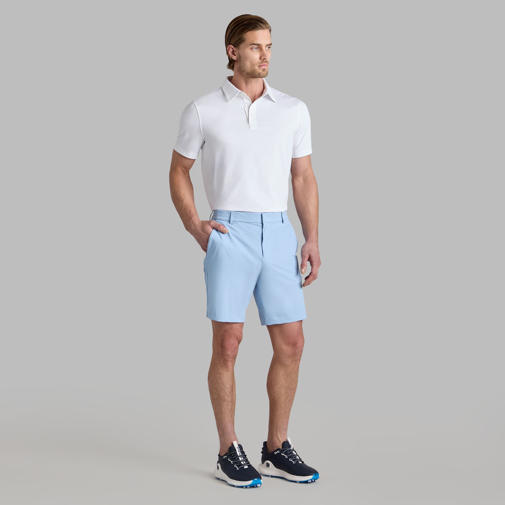 THIS CLASSIC POLO IS THE ULTIMATE EVERYDAY ESSENTIAL FOR DAYS AT THE CLUBHOUSE, THE COURSE, AND IN BETWEEN. MADE OF EXTRA BREATHABLE AND WICKING MÉLANGE ICE NYLON WITH ODOR INHIBITING AND COOLING PROPERTIES, PLUS 4-WAY STRETCH, IT'S A MUST-HAVE FOR ANY GOLFER'S CLOSET. PAIR THIS EVERYDAY STYLE WITH ONE OF OUR STRAIGHT LEG PANTS FOR ALL DAY PLAY.
