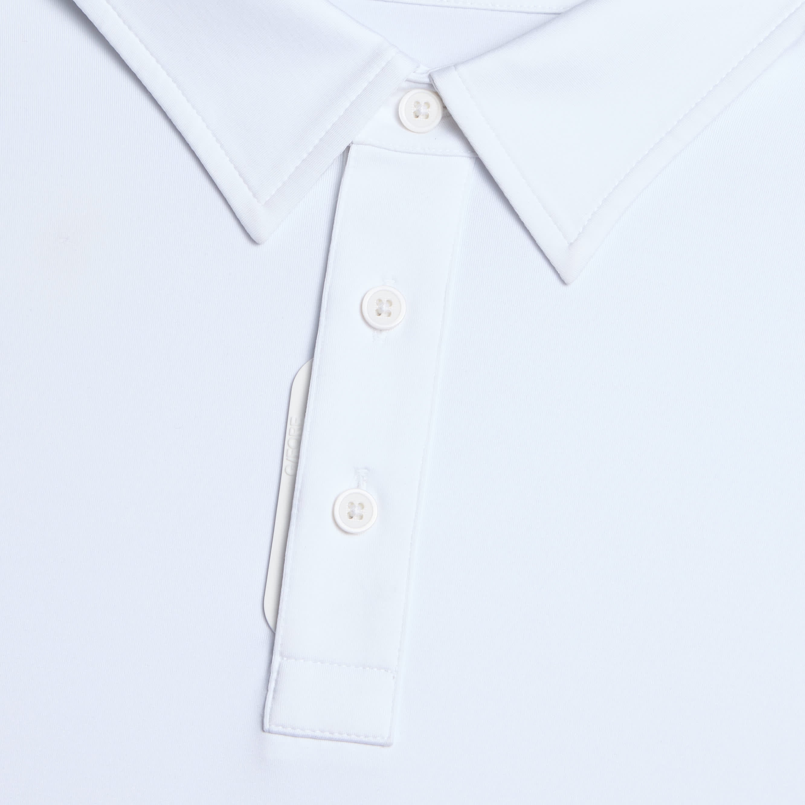 MADE WITH EXTRA BREATHABLE MÉLANGE ICE NYLON 2 BUTTON PLACKET & BUTTON AT COLLAR STAND SILICONE LOGO TAB ON FRONT ULTIMATE MOBILITY WITH 4-WAY STRETCH ODOR INHIBITING & MOISTURE WICKING PROPERTIES UV PROTECTION FOR AN ADDED LAYER OF DEFENSE COOLING EFFECT FOR WARMER DAYS