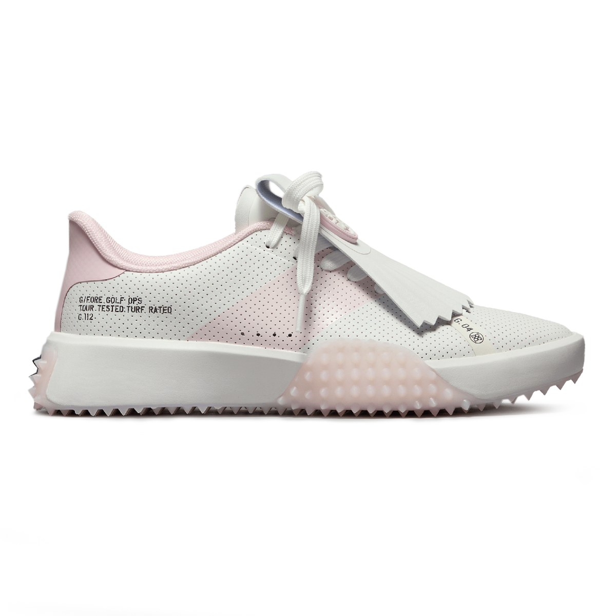THE WOMEN'S G.112 P.U. LEATHER KILTIE GOLF SHOE SUPPORTS A PREMIUM PERFORMANCE WITH AN ATHLETIC STYLE AND CUTTING EDGE INNOVATION. EQUIPPED FOR OPTIMAL TRACTION AND STABILITY WITH A LOW DROP AND SUPERIOR ARCH SUPPORT. PLUS, REMOVABLE KILTIE ACCENTS FOR VERSATILITY. IT'S THE GO-TO SHOE FOR ALL DAY PLAY ON THE COURSE.