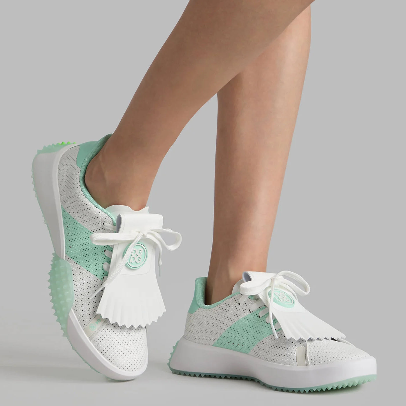 THE WOMEN'S G.112 P.U. LEATHER KILTIE GOLF SHOE SUPPORTS A PREMIUM PERFORMANCE WITH AN ATHLETIC STYLE AND CUTTING EDGE INNOVATION. EQUIPPED FOR OPTIMAL TRACTION AND STABILITY WITH A LOW DROP AND SUPERIOR ARCH SUPPORT. PLUS, REMOVABLE KILTIE ACCENTS FOR VERSATILITY. IT'S THE GO-TO SHOE FOR ALL DAY PLAY ON THE COURSE.