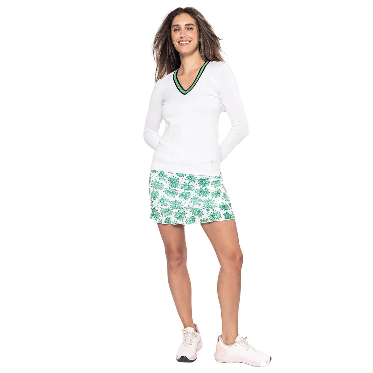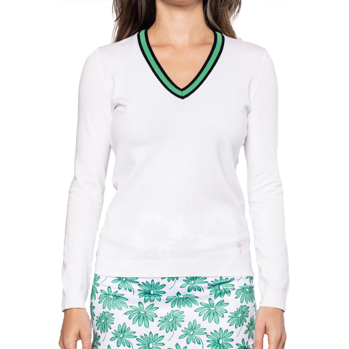 Golftini Women's Fashion V-Neck Sweater - White/Kelly Green