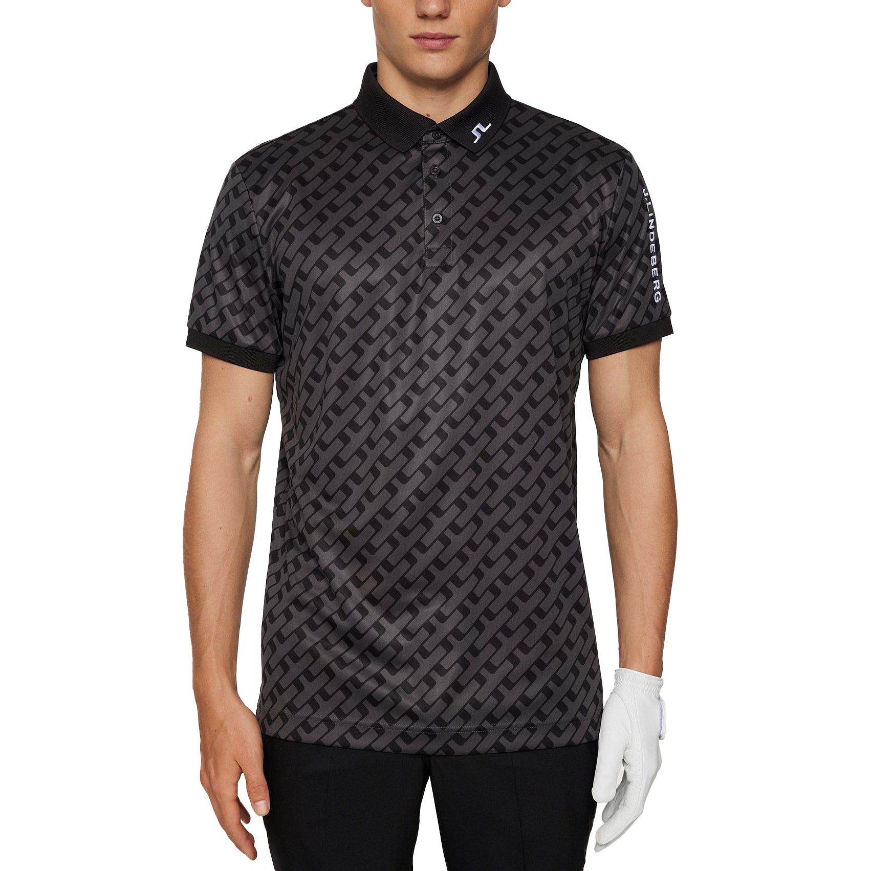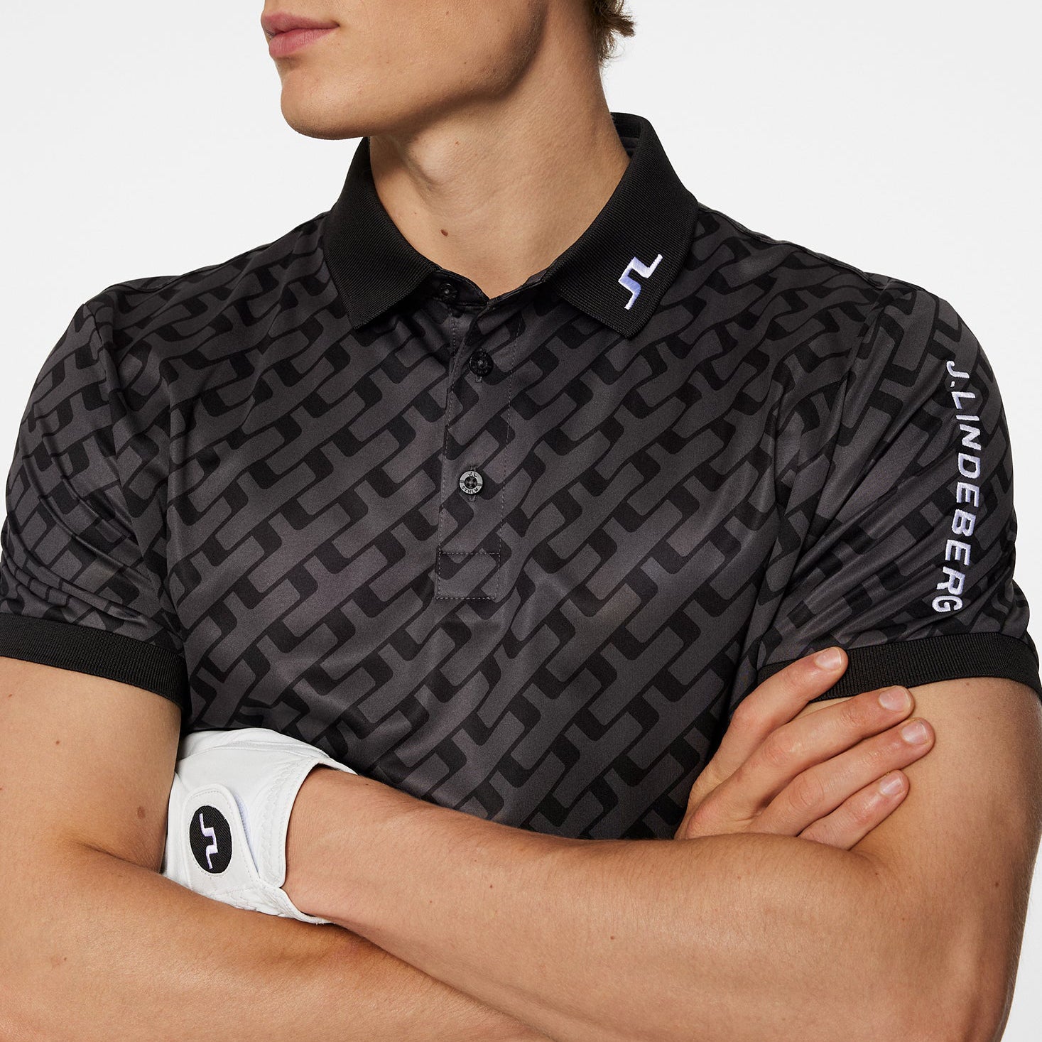 J.Lindeberg Tour Tech Regular Fit Print Golf Polo Shirt - Tour Geo Tonal Black