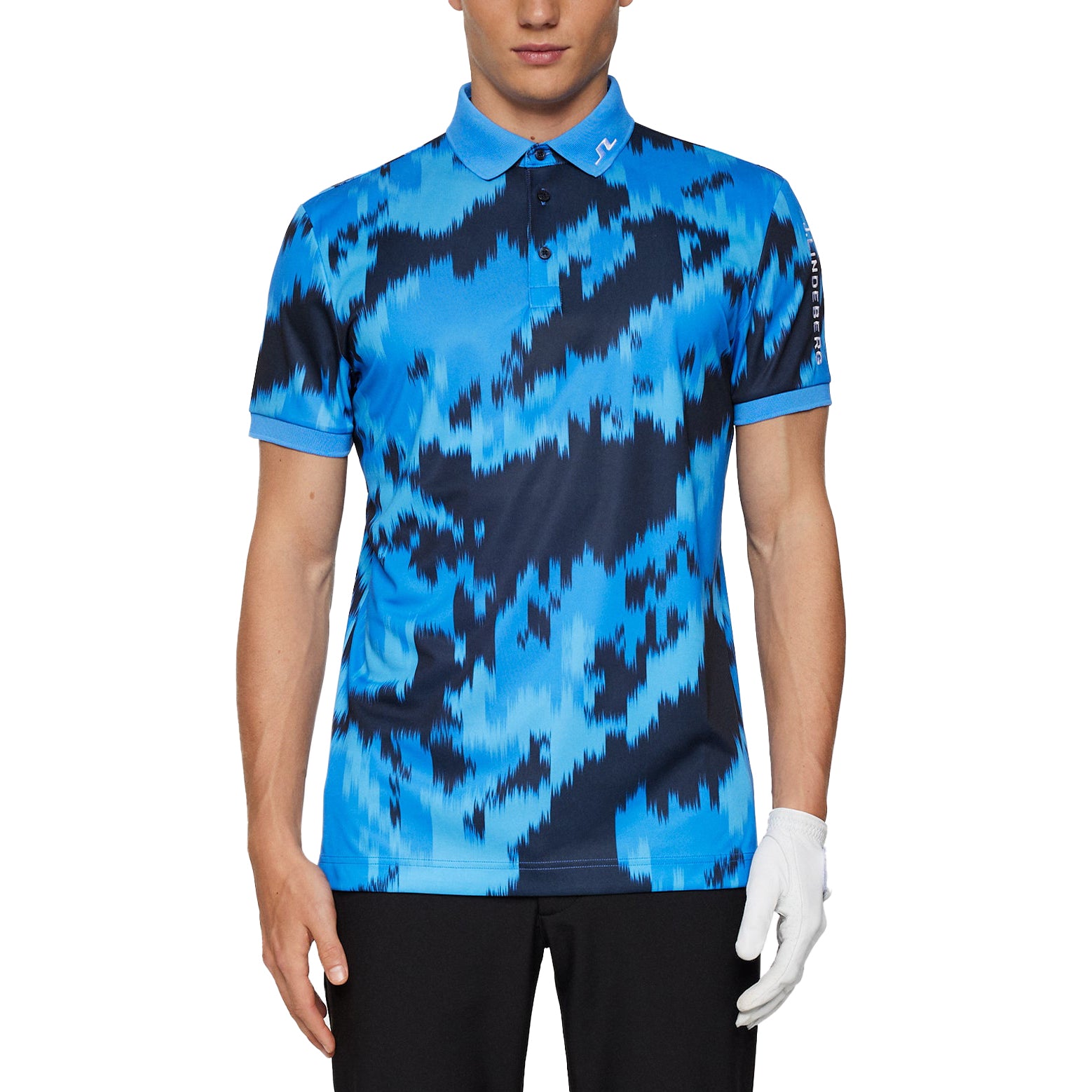 J.Lindeberg Tour Tech Regular Fit Print Golf Polo Shirt - Warp Sonic Blue