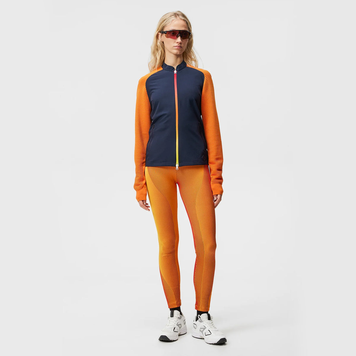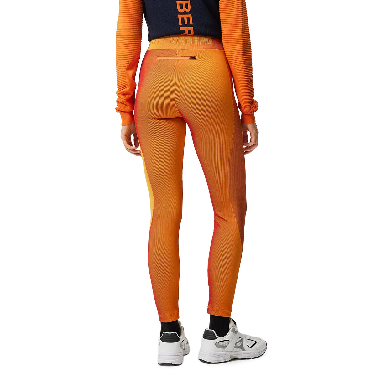 Crafted from a sculpting 3D rib fabric, the Bridget Leggings are designed to move with you. Sharp color-blocking contrasts against brightly colored J.Lindeberg branding at the waistband, adding a dynamic sense of depth to the piece, whilst the fabric’s durable 4-way stretch ensures optimum performance, whatever the activity. There's a handy zipped back pocket for storing your small belongings, such a keys and cards.