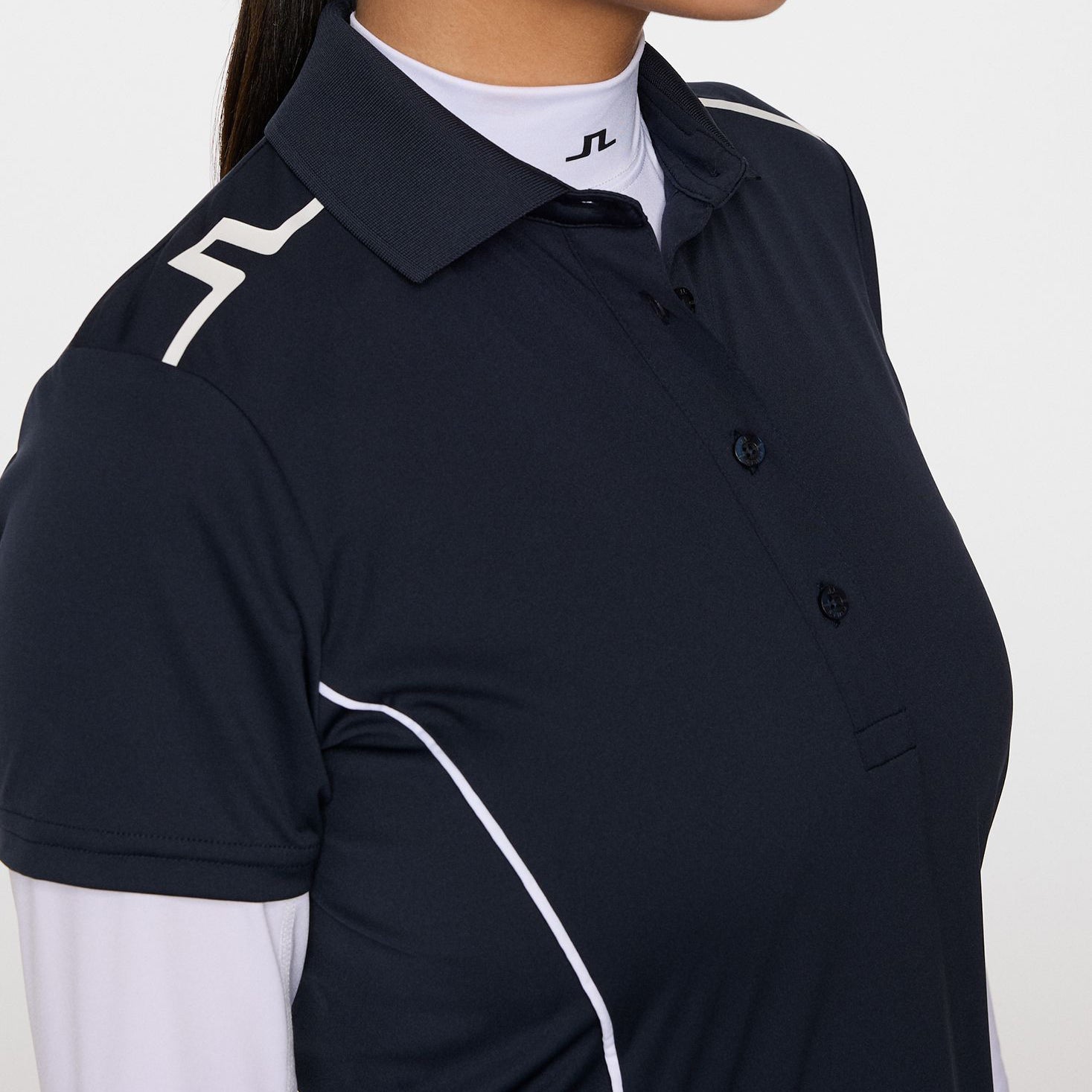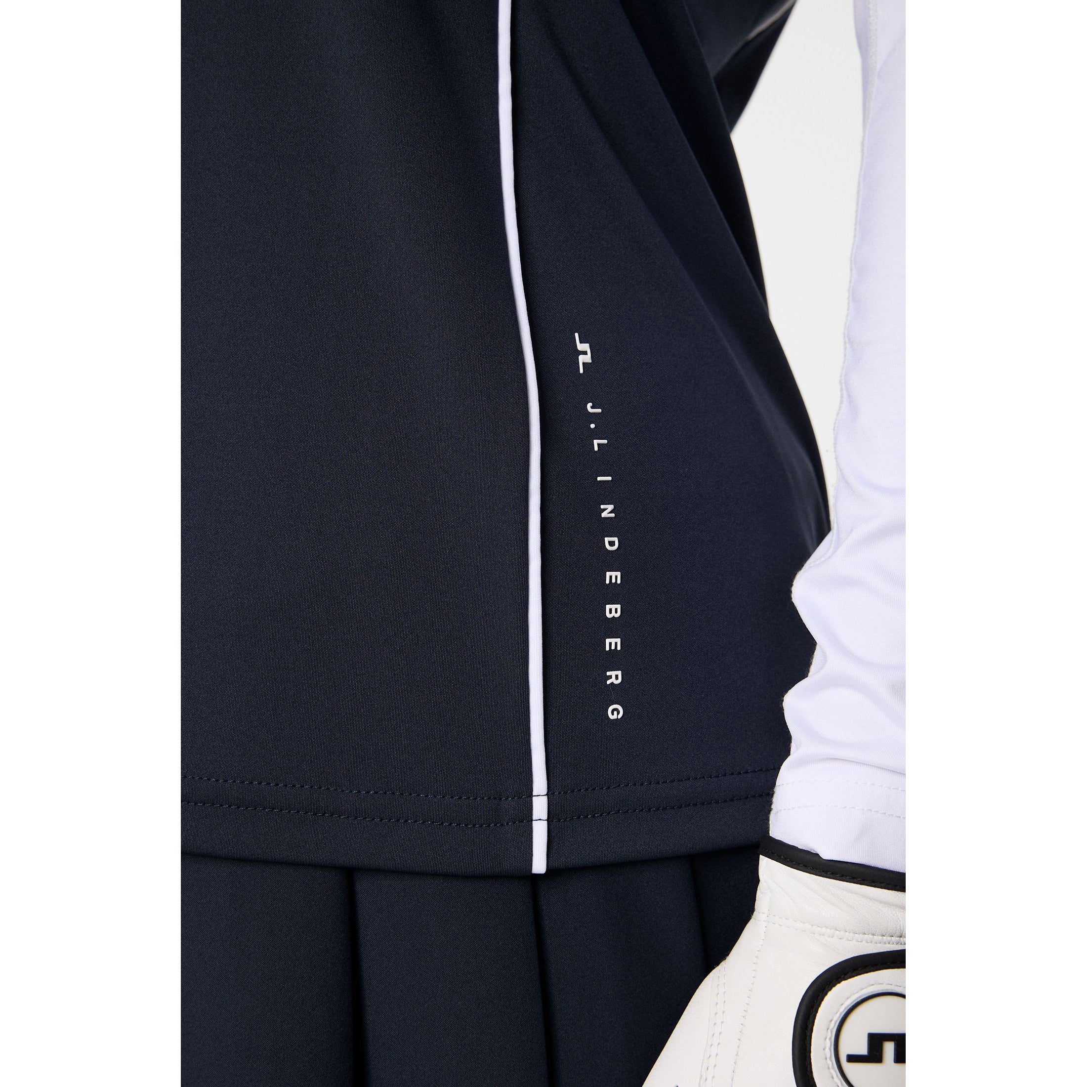 J.Lindeberg Text Logo on Left Side: Adds clean, minimal branding to the overall design.