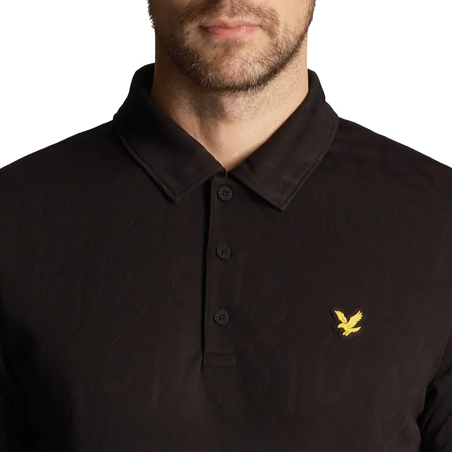 Lyle & Scott Monogram Jacquard Golf Polo Shirt - Jet Black