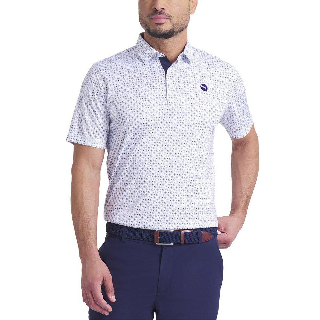 Puma Pure 2.0 Circle Cat Golf Shirt - White Glow/Deep Navy