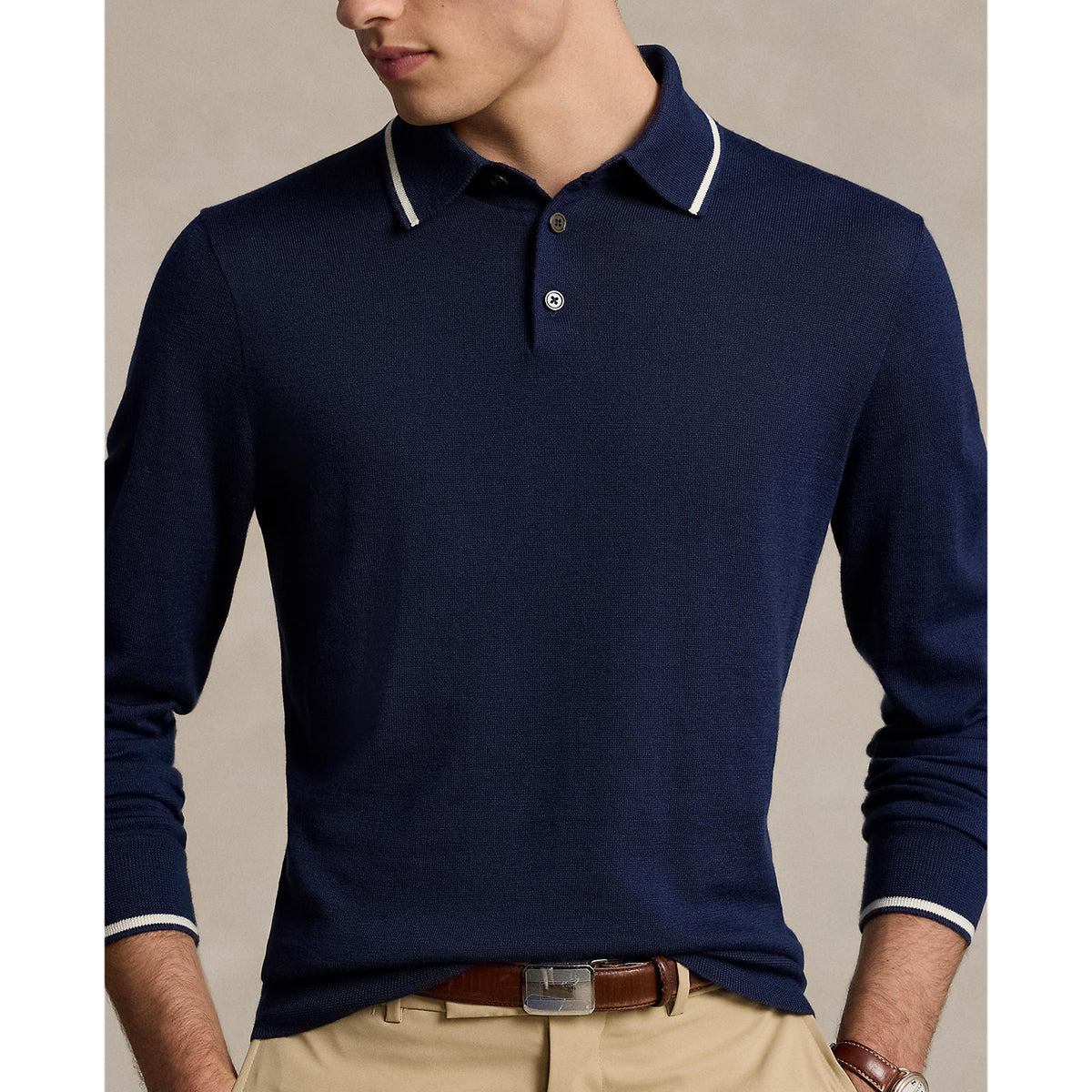 Key Features: -Tailored Fit: Size medium features a 26.75" body length, 17.5" shoulder width, 42" chest, and 25.75" sleeve length (sleeve length increases by 0.5" between sizes). -Refined Design: A rib-knit polo collar with contrast tipping and a three-button placket offers a polished, classic look. -Premium Details: Crafted with genuine mother-of-pearl buttons for an elevated finish. -Comfort & Flexibility: Long sleeves with rib-knit cuffs and hem, both featuring contrast tipping, ensure a sleek yet comfortable fit. -Signature Branding: The embroidered "RLX" logo at the center back neck adds a premium touch. -Performance Fabric Blend: Made from a breathable, moisture-wicking mix of 55% polyester and 45% wool, keeping you warm yet dry. -Easy Care: Machine washable for convenience. -The model is 6'1" (185 cm) and wears a size medium.