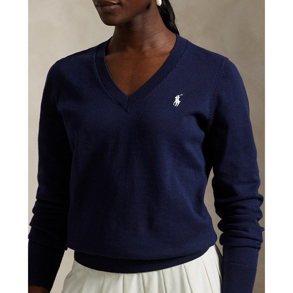 RLX Ralph Lauren Women's Cotton Blend V-Neck Golf Jumper - Refined Navy