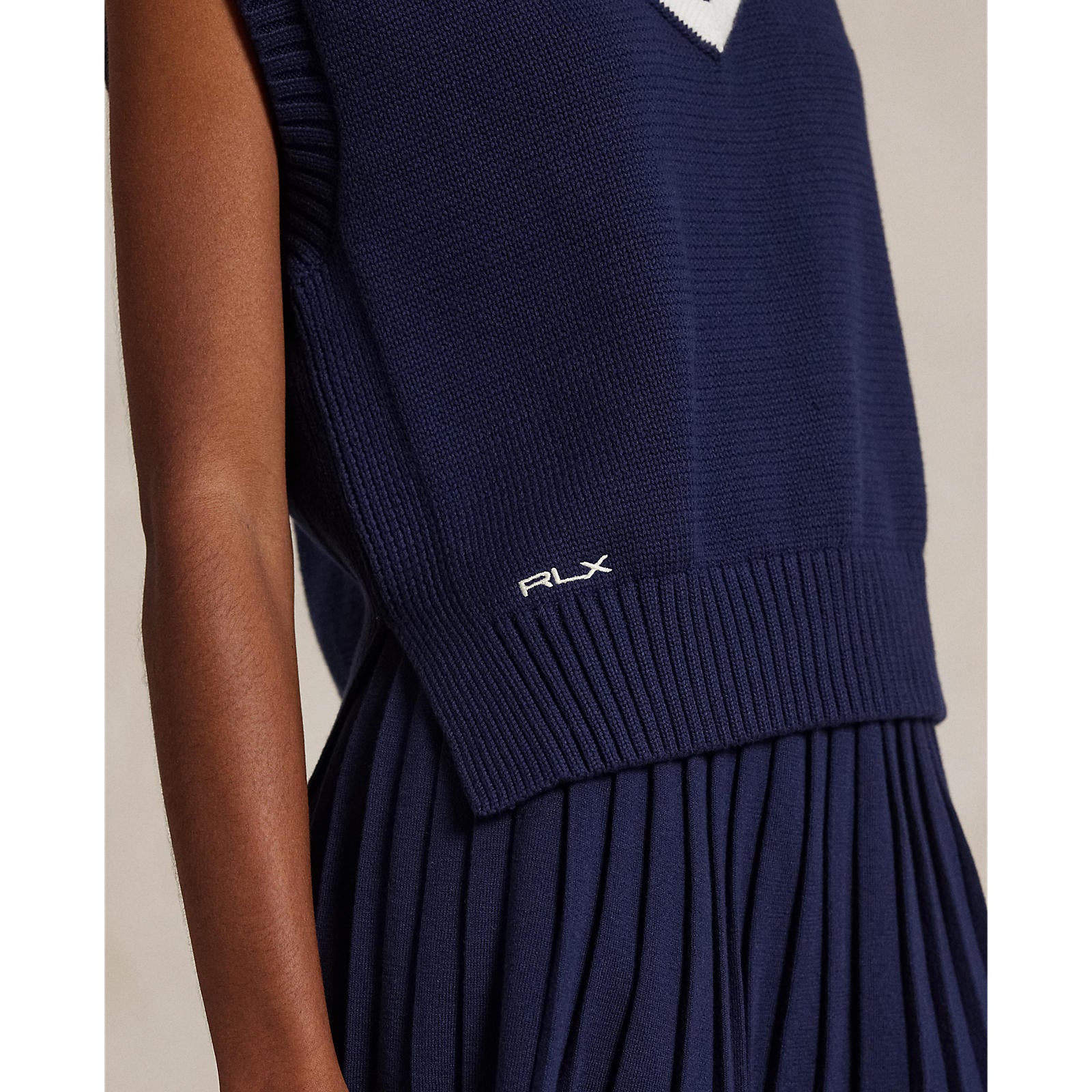 RLX Ralph Lauren Women's Cotton V Neck Sleeveless Sweater Vest - Refined Navy/Ceramic White