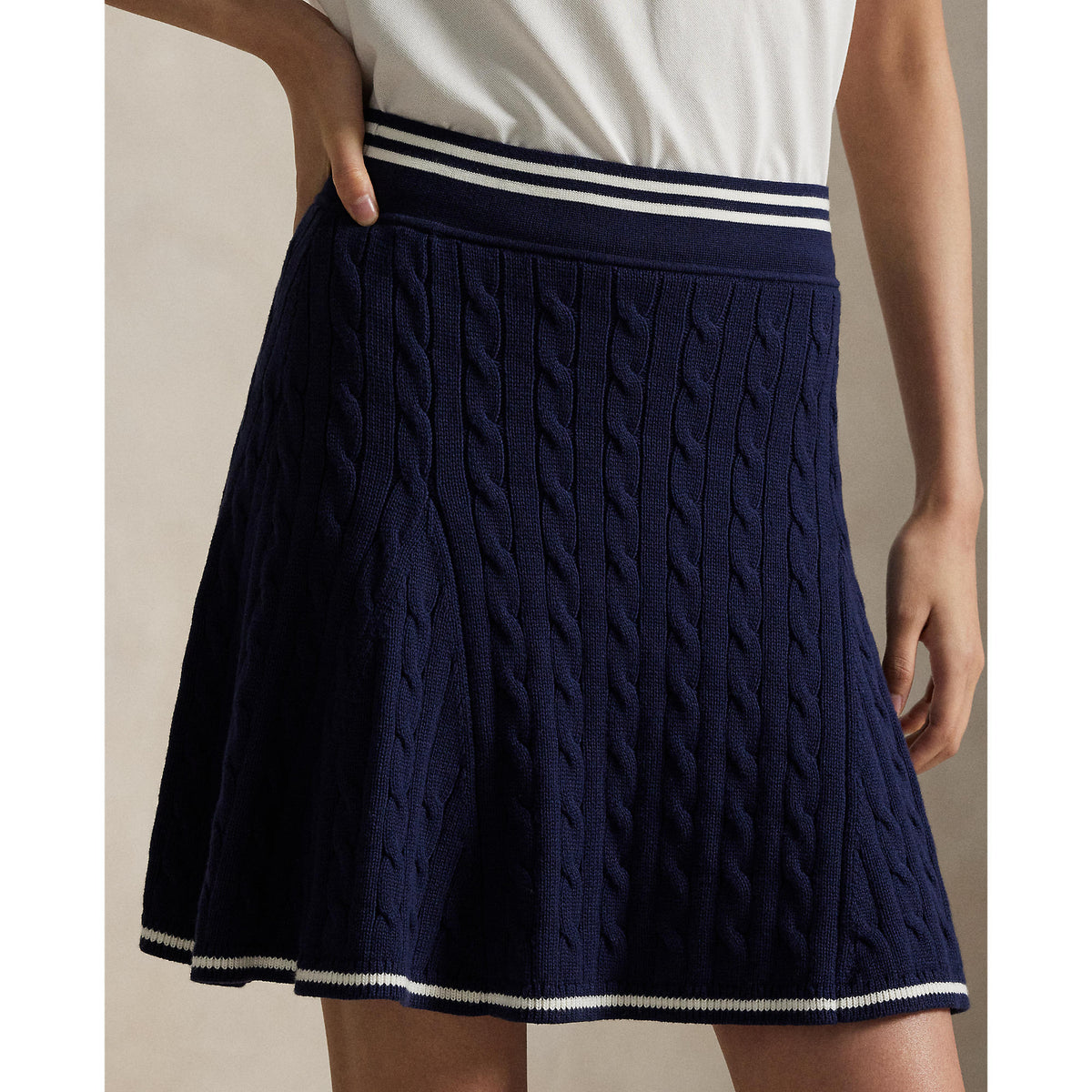 Classic, Breathable, and Performance-Driven The RLX Ralph Lauren Women’s Cable-Knit High-Rise A-Line Golf Skirt combines timeless style with modern performance. Crafted from a moisture-wicking cotton blend enhanced with COOLMAX® fibres, this skirt keeps you cool, dry, and comfortable while delivering a polished, athletic silhouette.