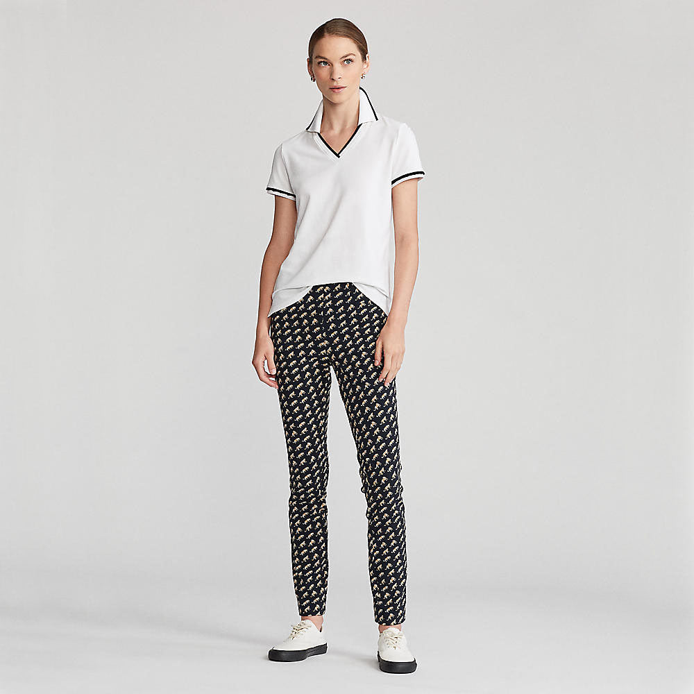 If there were to be a trouser that was flexible enough to wear to yoga, but trousery enough to golf, these would be your pant. They are perfect for golf and can also work for travel as they are so easy to care for and super lightweight. They have a side zip closure, and front and back pockets and this season come in an allover dot print. DETAILS
