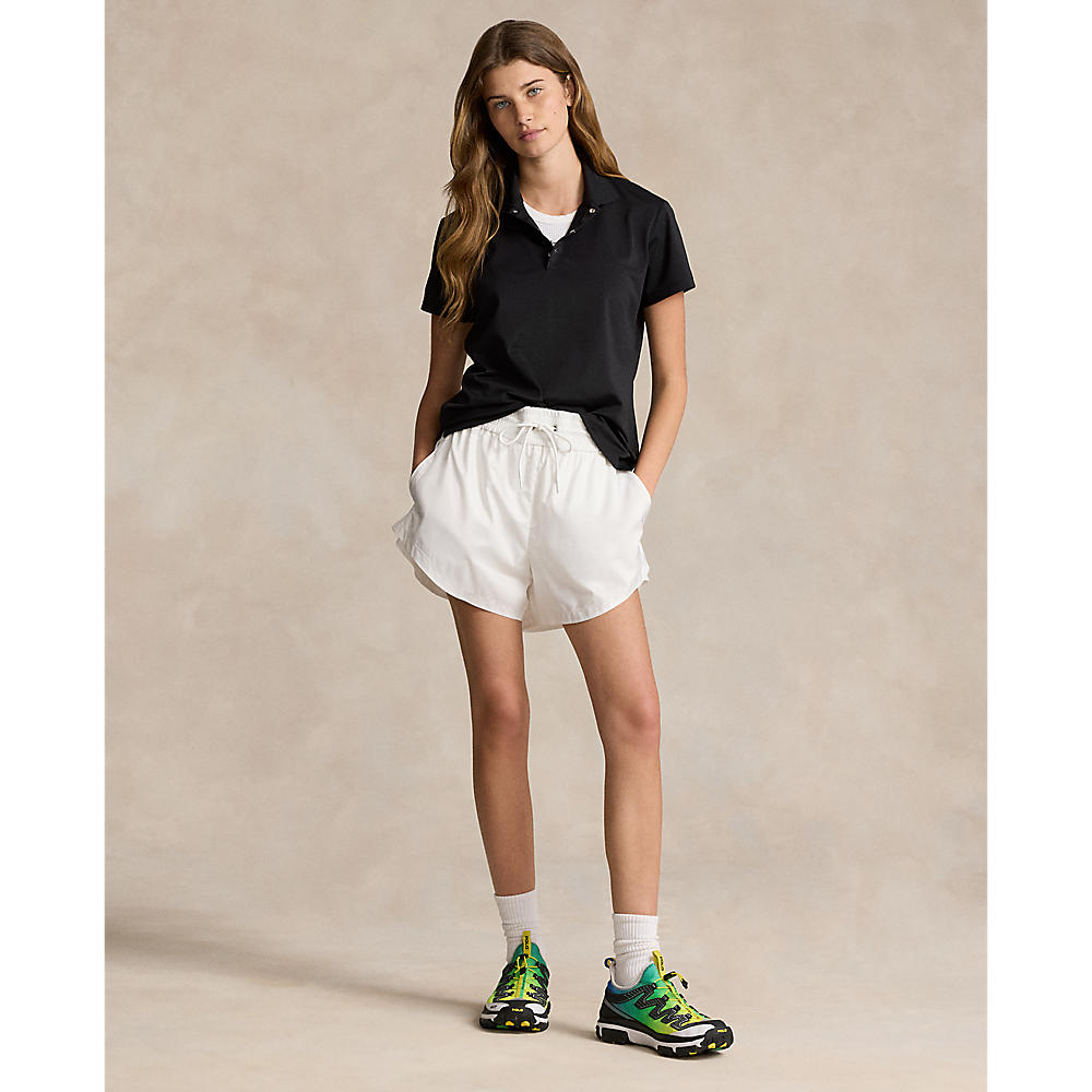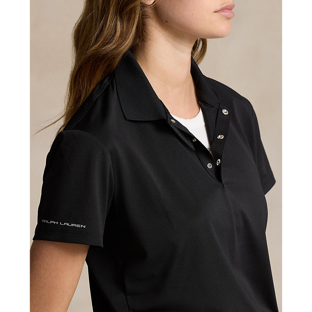 Ribbed Polo collar. Three-snap placket. "RLX" printed at the center back of the neck. Short sleeves. Vented hem. "Ralph Lauren" printed at the right sleeve. Polyester, elastane.