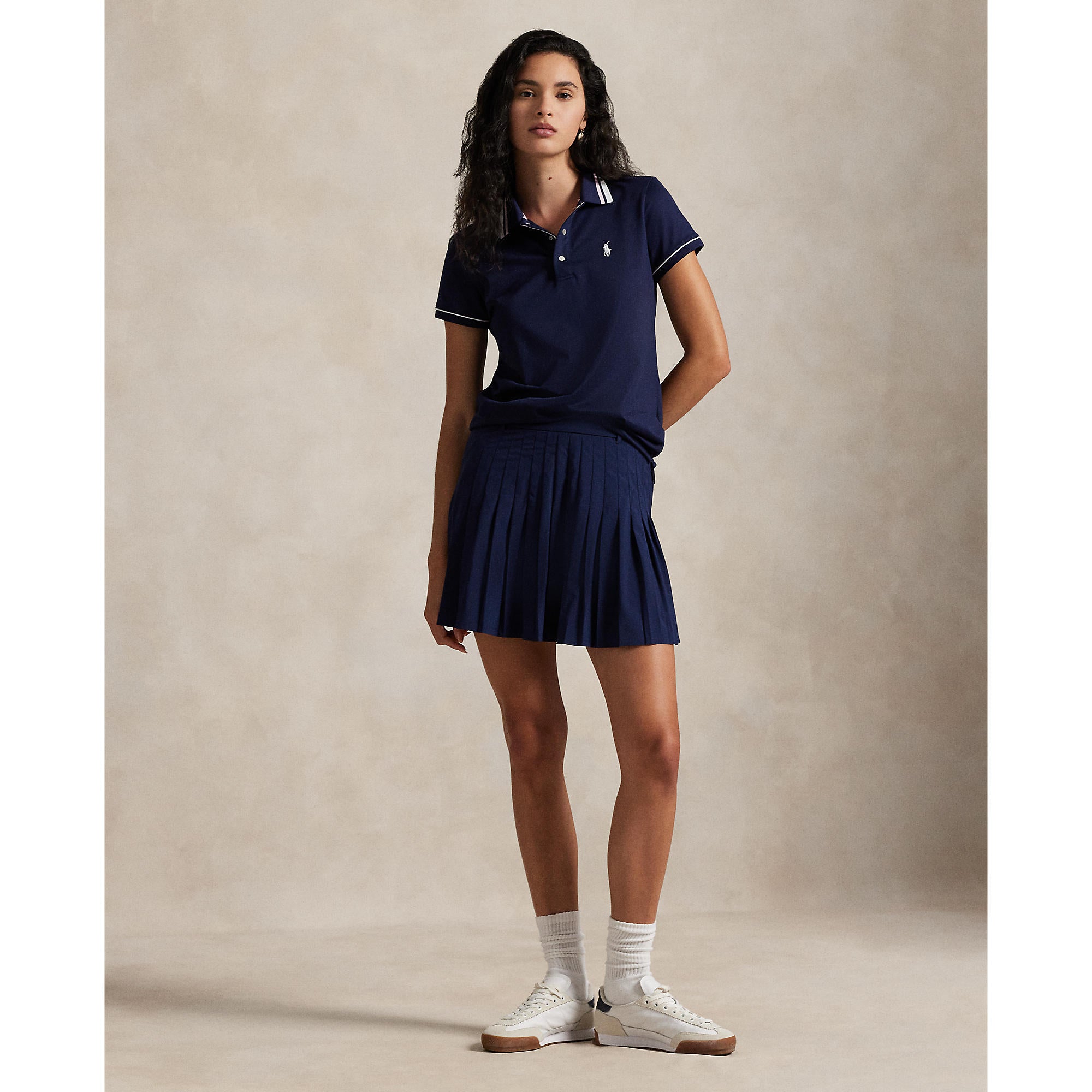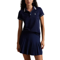Classic meets performance in the RLX Ralph Lauren Women's Tour Pique Polo Shirt, crafted from a soft jersey fabric blend for all-day comfort. Designed in a Tailored Fit, this polo features a gently tapered silhouette that flatters while allowing for full range of motion on the course. Detailed with striped tipping, piped trim, and signature branding, it's a refined take on sporty style.