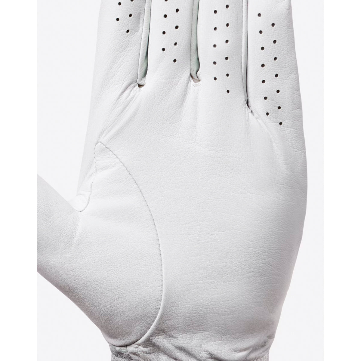 -Premium cabretta leather men’s golf glove -Grip location reminder to help your game and keep things lined up -Lightweight and flexible -Breathable perforation for moisture reduction -Adjustable tab closure allows a customized fit