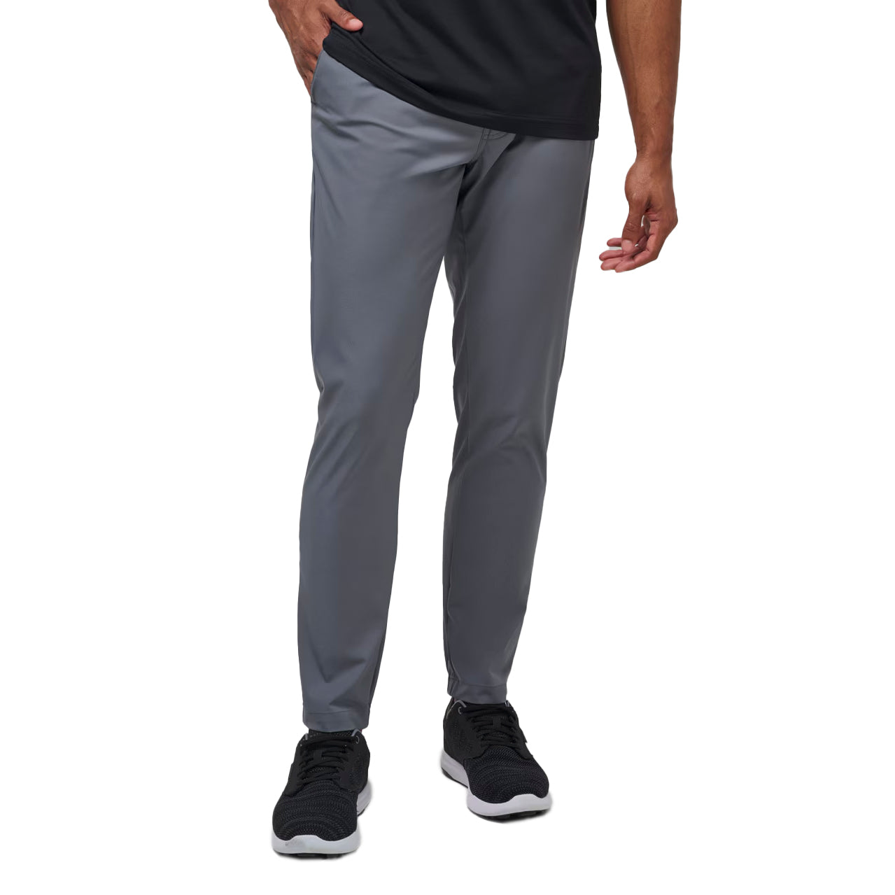 -Modern, tapered jogger fit, 32 1/2” inseam, 42 1/2” outseam -Signature Wanderlust performance fabrication with 4-way stretch -5-pocket design -Half-elastic cuff on back hem -High Density TravisMathew block logo on back of right calf