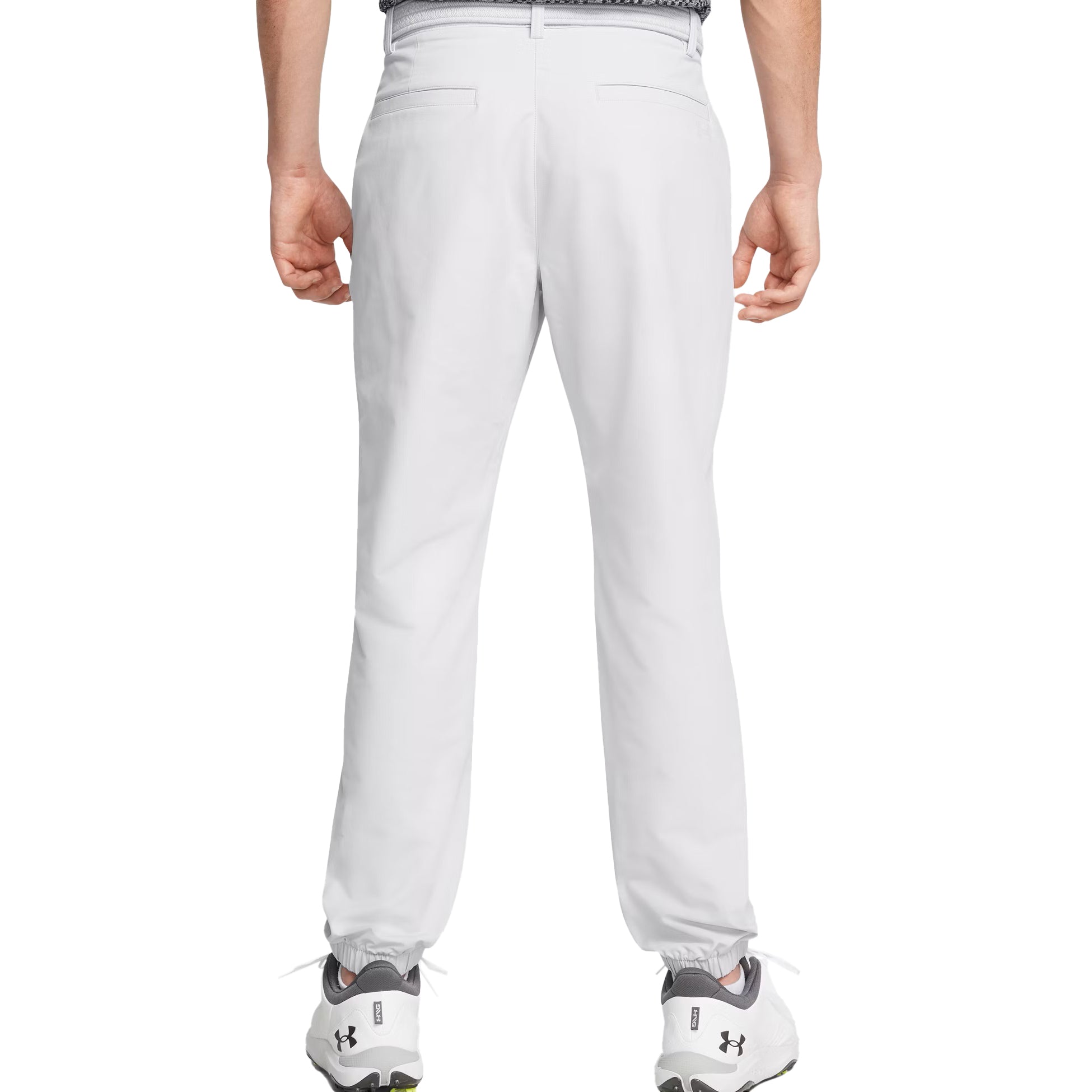 -Soft, stretchy woven fabric delivers total comfort -Material wicks sweat & dries really fast -Super-comfortable waistband stretches so you can move through your swing -Flat-front, 4-pocket design -Encased elastic cuffs