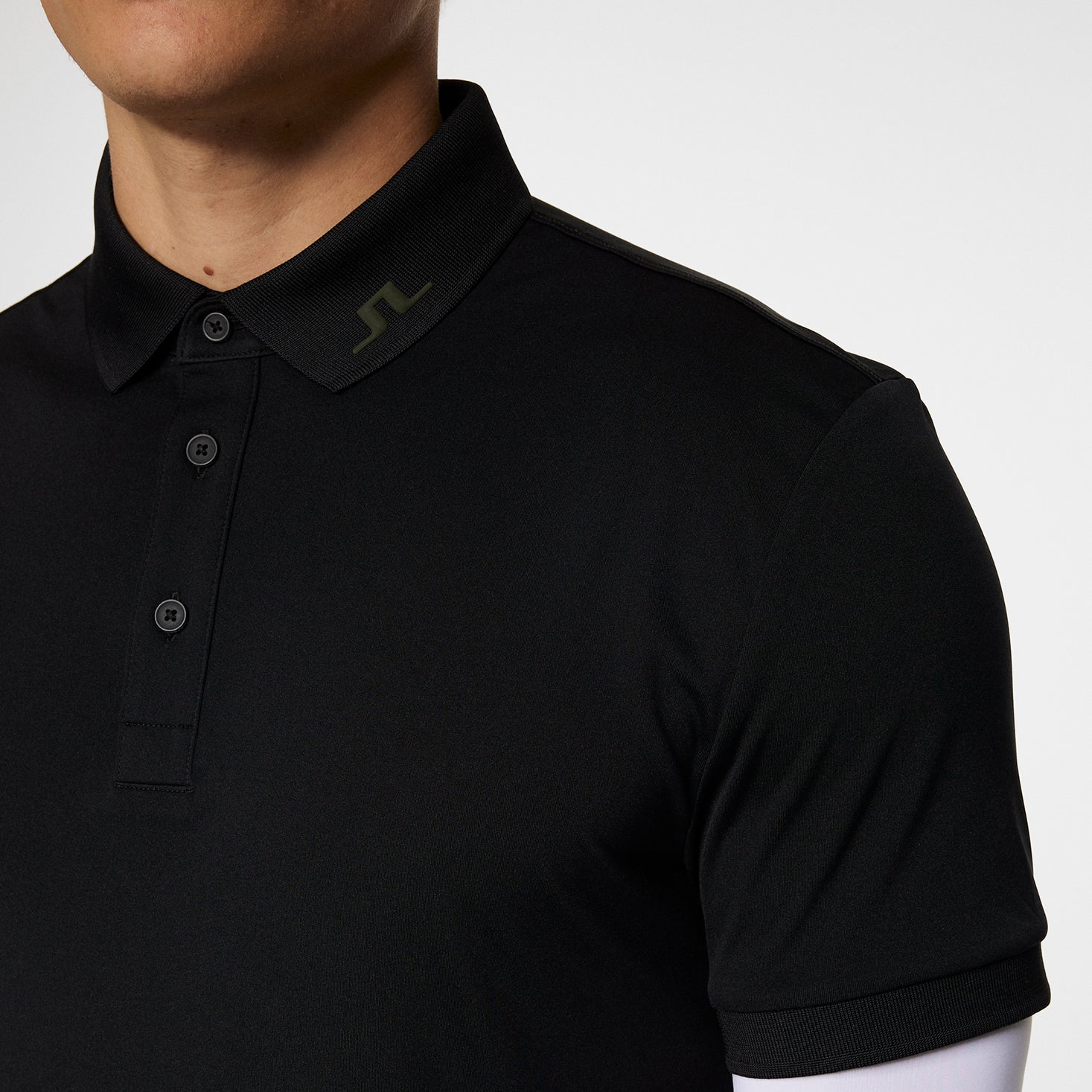 签名品牌:项圈上的绣花桥徽标增加了精致且可识别的J.Lindeberg Touch。