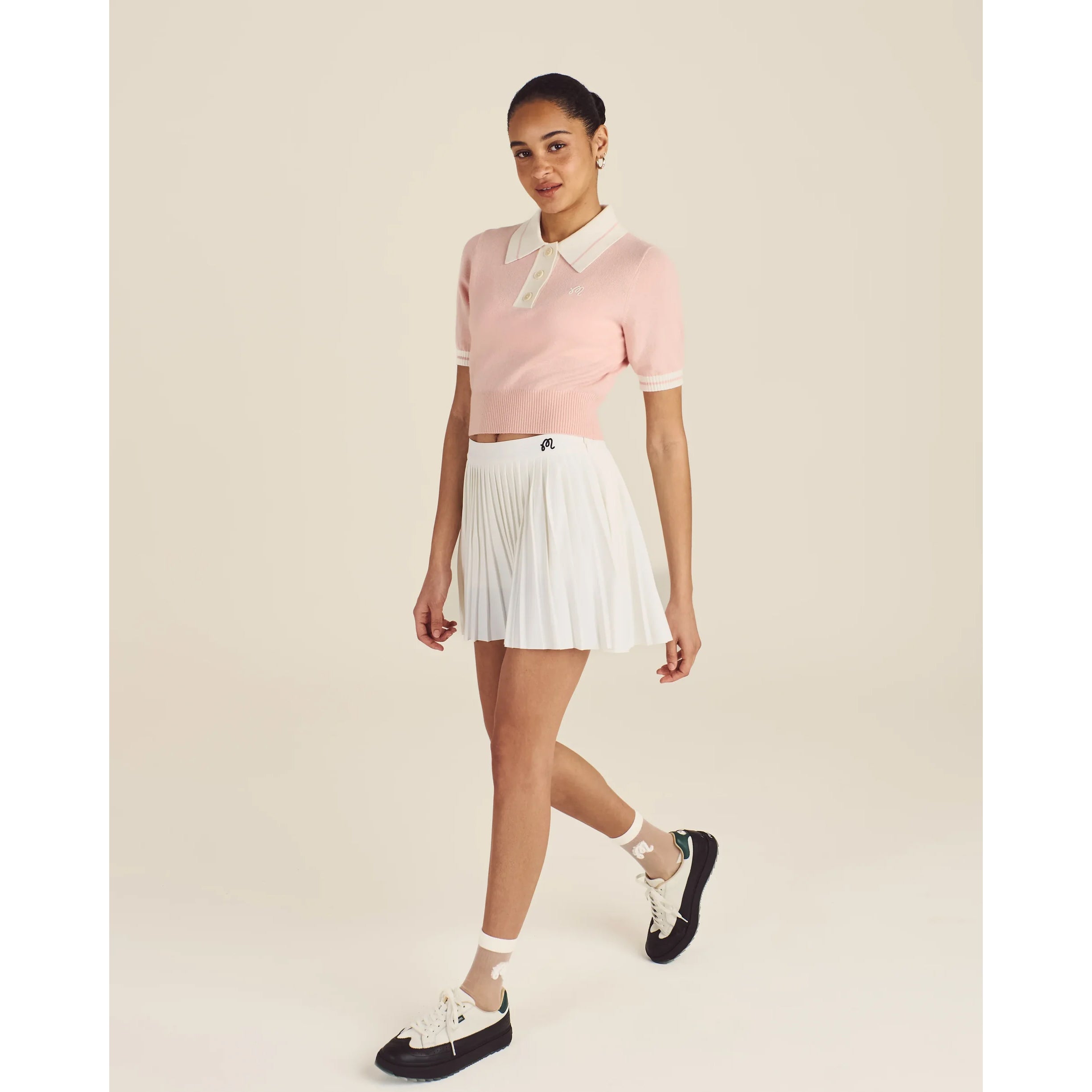 Mikayla 针织 Polo 衫采用柔软的羊毛和羊绒混纺面料制成,将性能与低调风格融为一体。无袖剪裁增强了挥杆的灵活性,经典廓形展现了微妙的品牌标志,可与任何服饰搭配。