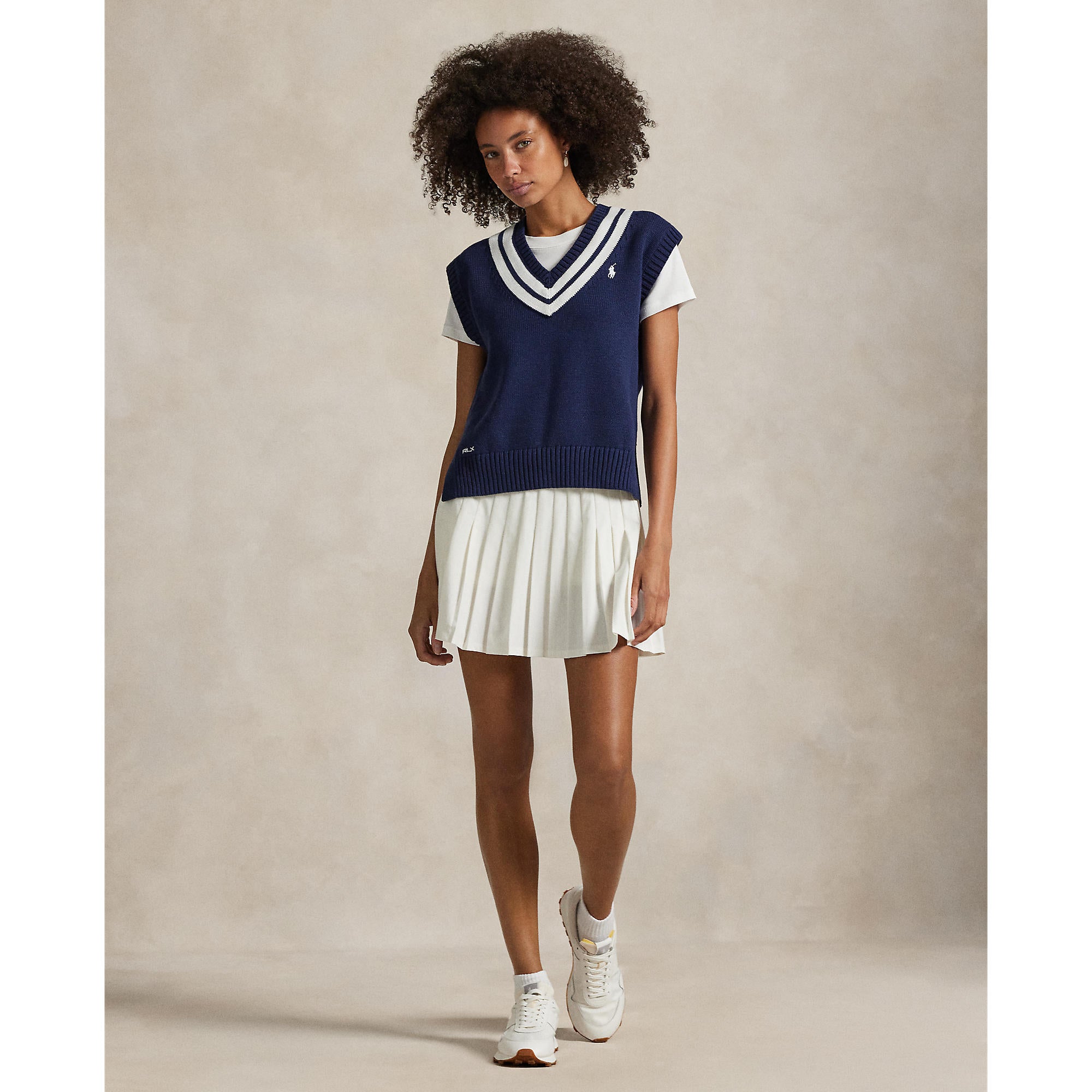 RLX RALPH LAUREN女子无袖针织背心将永恒的板球风格与可持续的材料和轻松的舒适性融合在一起,使其成为任何活跃衣柜的多功能分层。