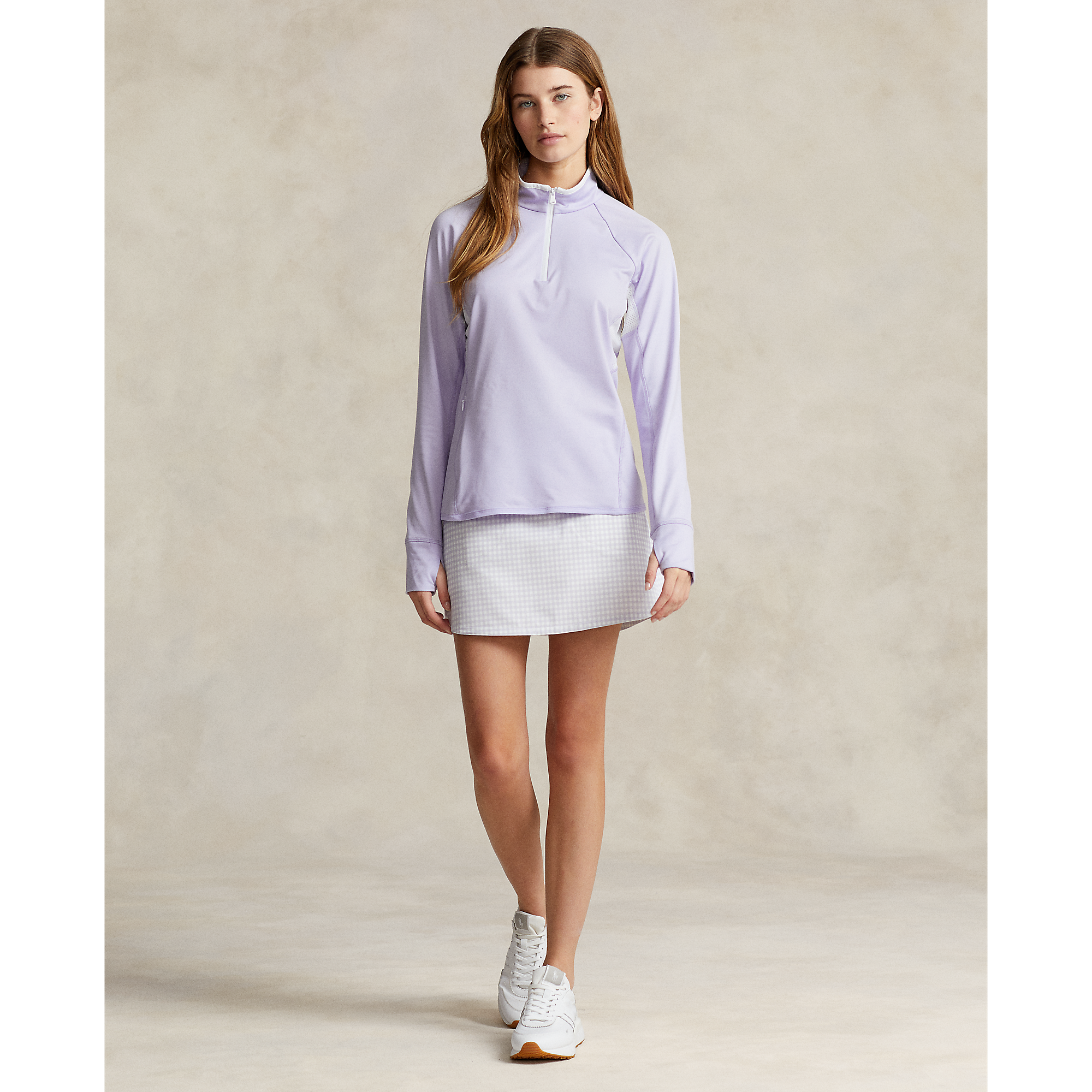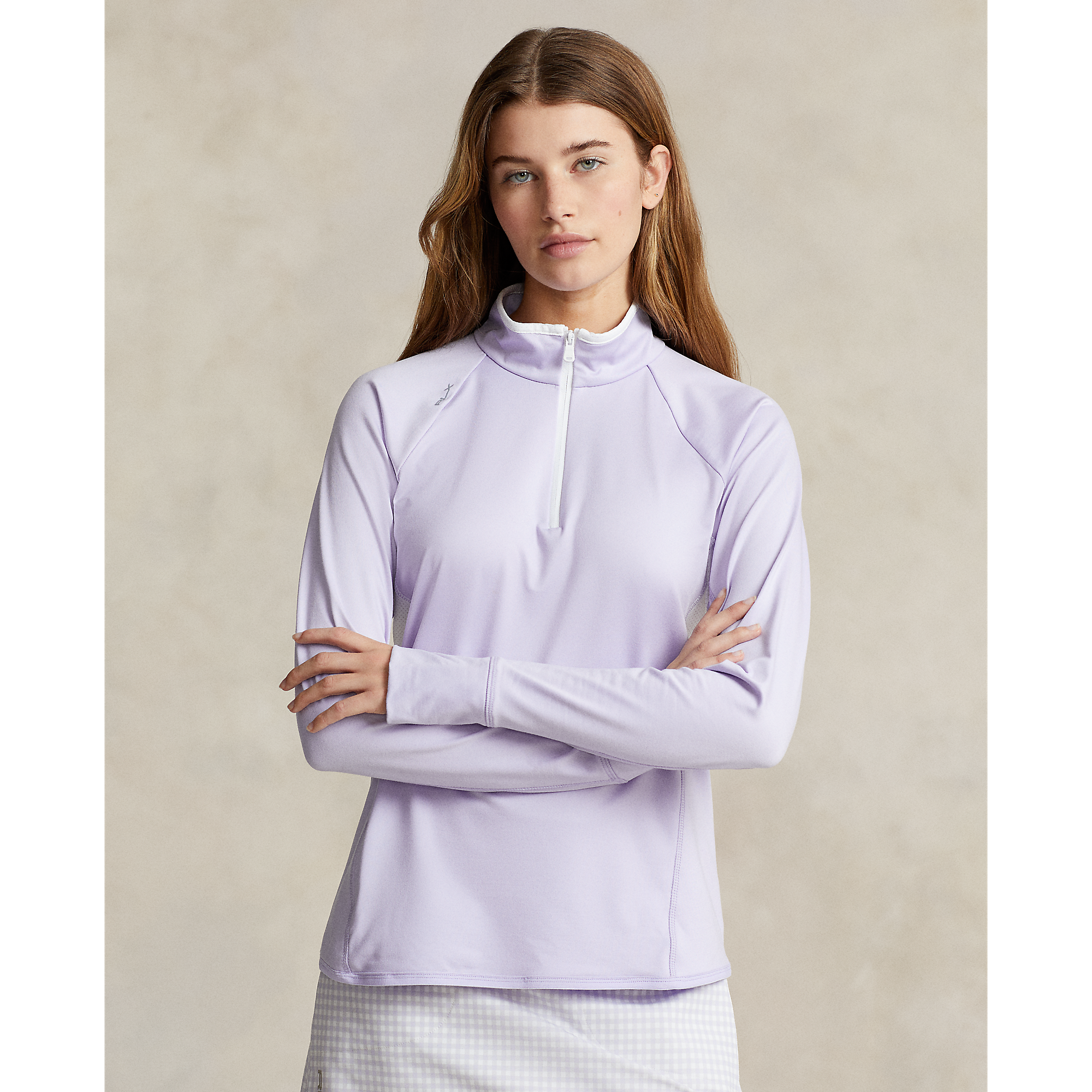 RLX RALPH LAUREN妇女球衣四分之一ZIP高尔夫套头衫 - 花紫色/白色