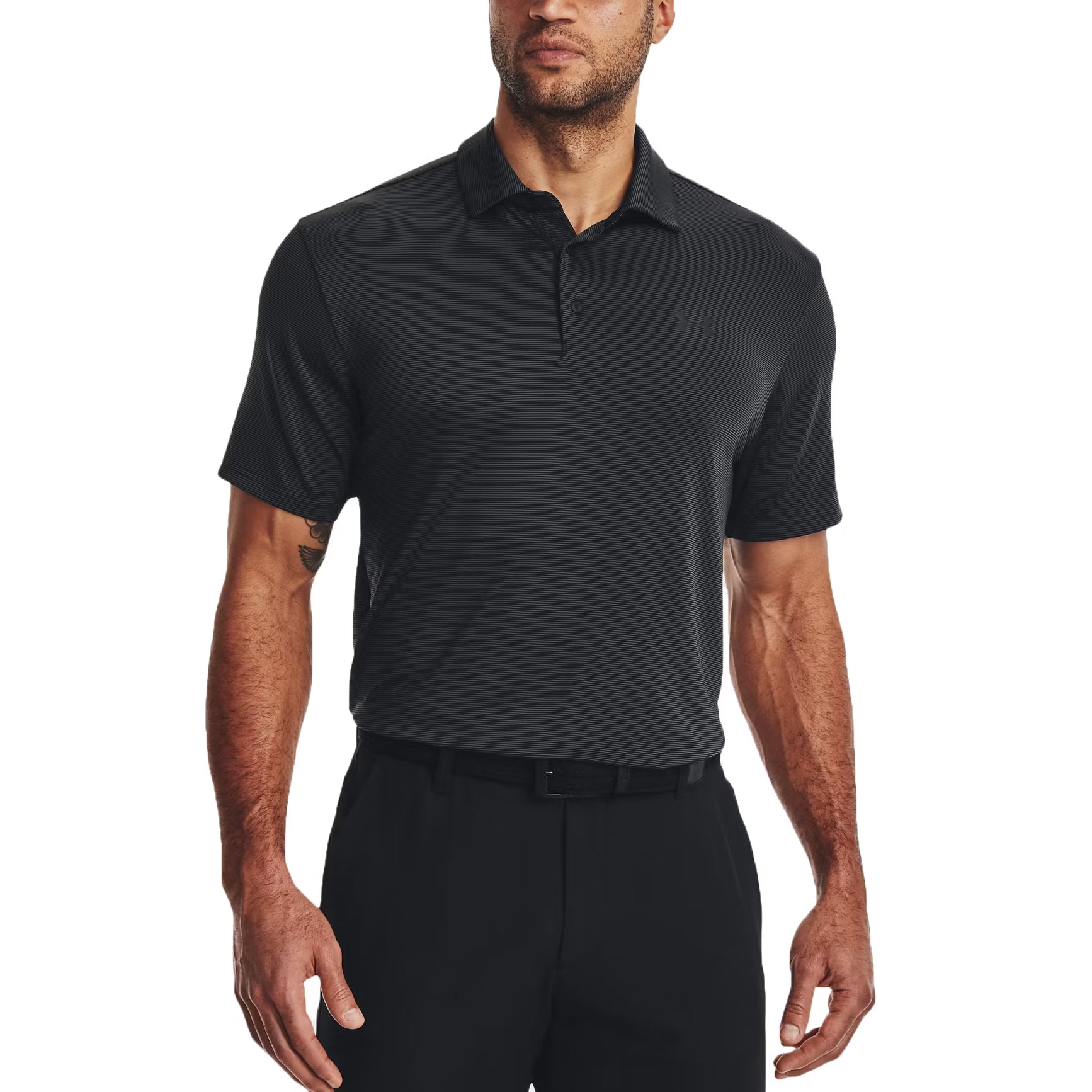 Under Armour季后赛3.0 Stripe Polo高尔夫衬衫 - 黑色/俯仰灰色